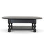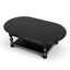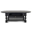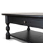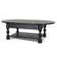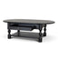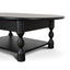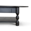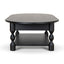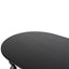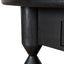 Solid ash wood frame and legs Plywood tabletop with natural veneer Black finish Convenient lower shelf Turned legs with a sculpted, geometric design Smooth oval-shaped tabletop Central drawer with a round metallic knob Weight Capacity: 90 kg Product comes fully assembled