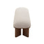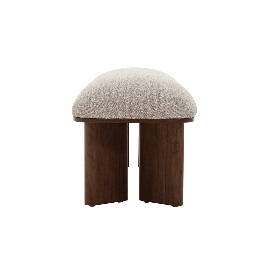 Clay grey polyester upholstery Engineered wood frame Supportive foam padding Engineered wood legs with walnut veneer Clay grey PU coating Smooth curved seat with soft fabric Modern geometric leg silhouette Rich wood grain patterns Weight Capacity: 200 kg This product is supplied flat-packed and requires assembly by two people