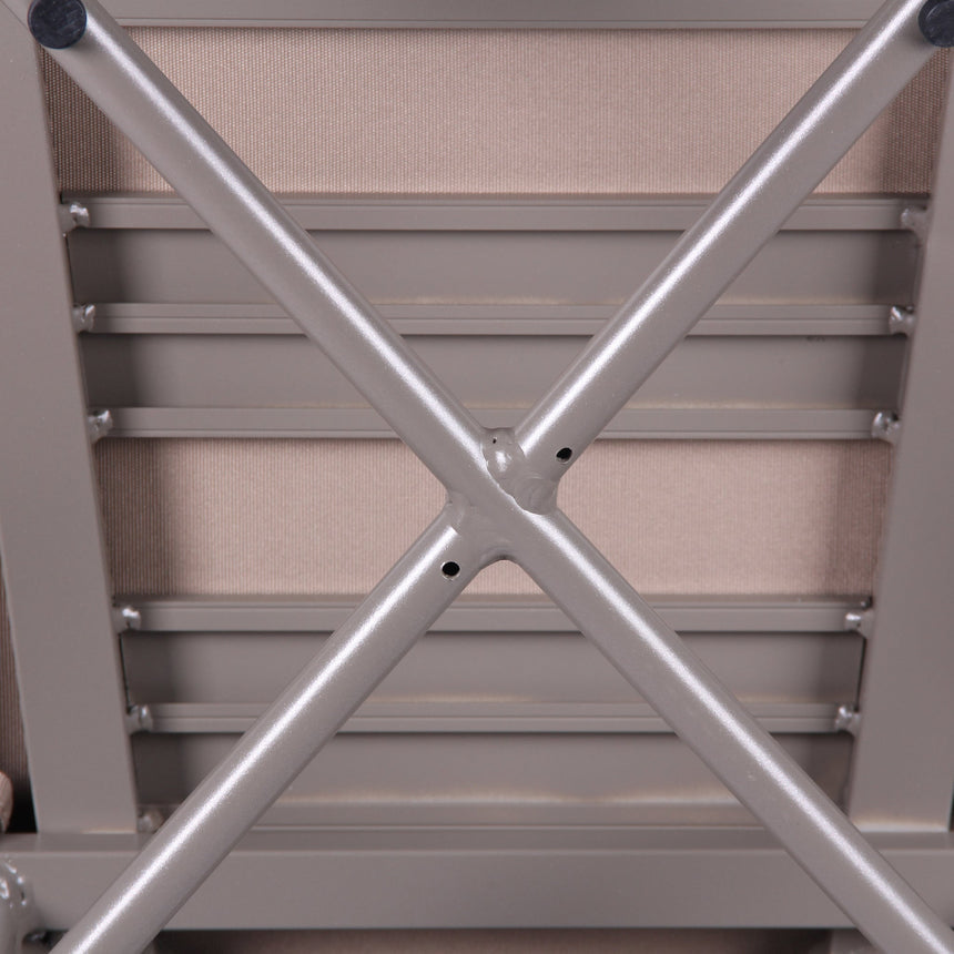 Brown polyester fabric upholstery Aluminum frame and legs 6mm rope detailing with 4cm thick cushion Rope with spandex polyester core Outer layer of rope; UV-resistant plastic and high-strength yarn Removable cushion with foam filling Gently rounded backrest Soft-to-medium seat firmness Cross-brace support Ergonomic design Weight Capacity: 200 kg Product comes fully assembled