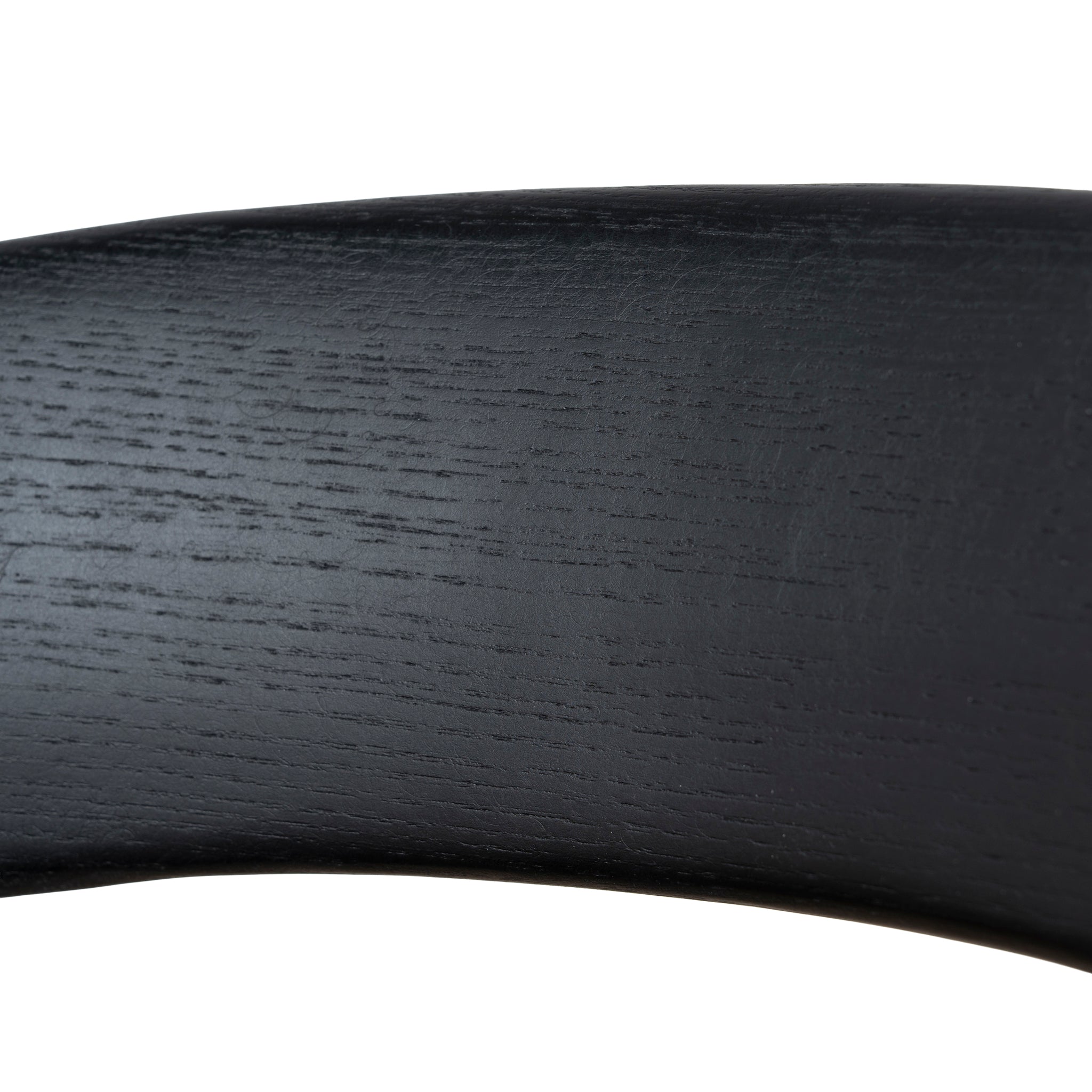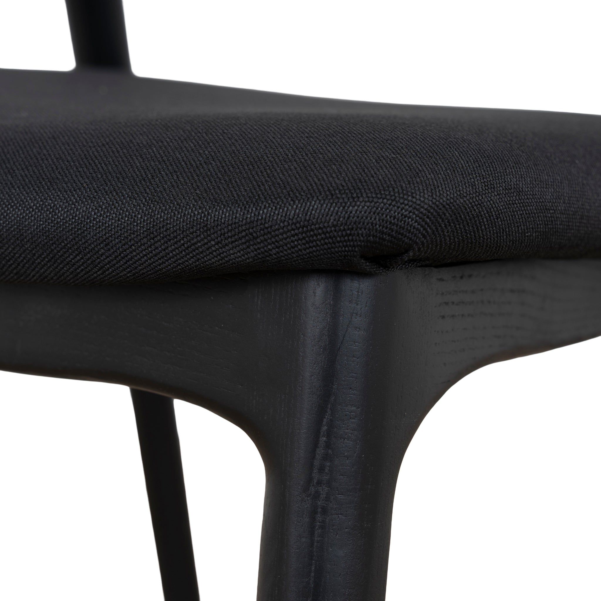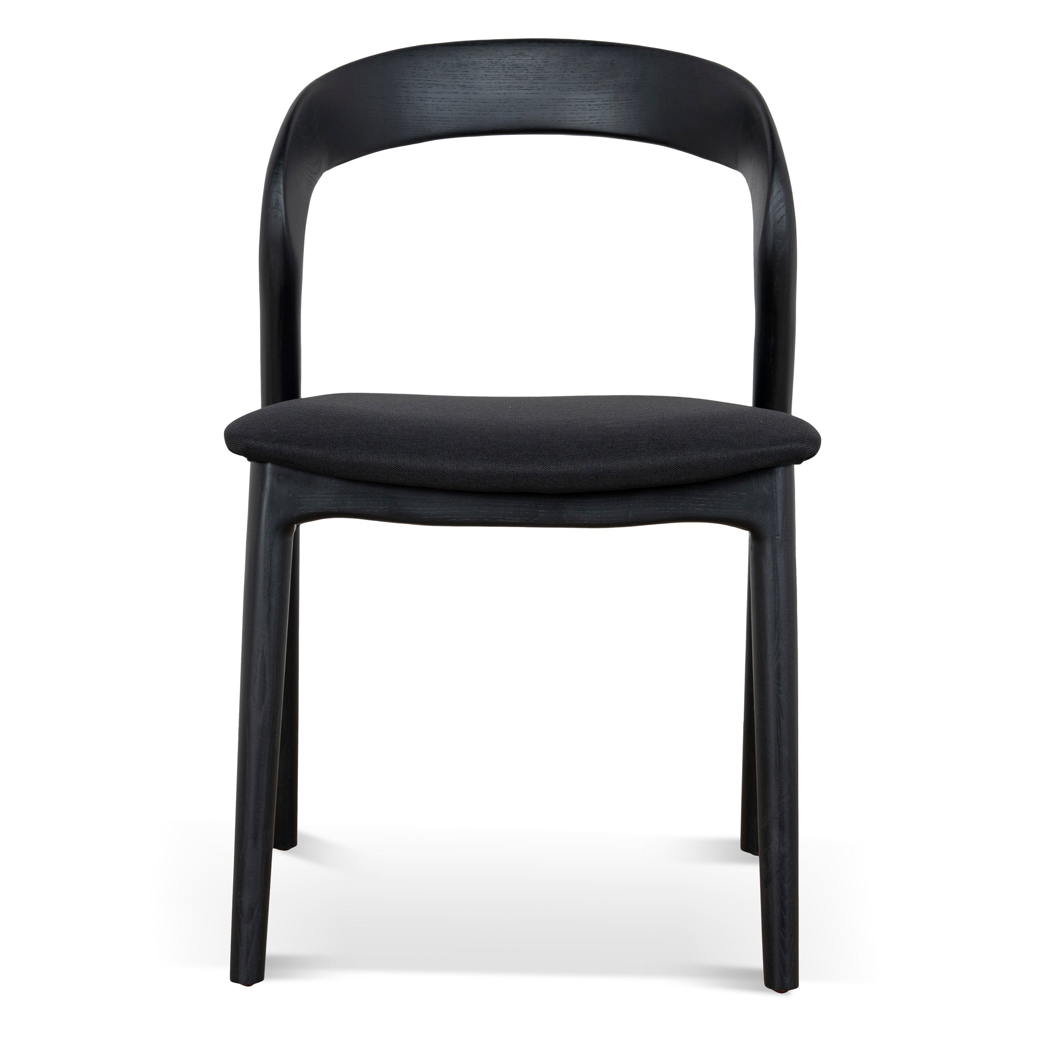 Full black polyester upholstery Solid ash wood frame Finished with NC coating Tapered ash wood legs Foam filling Soft-medium seat firmness Sculpted backrest with a rounded form Visible wood grain patterns Weight Capacity: 150 kg Product comes fully assembled