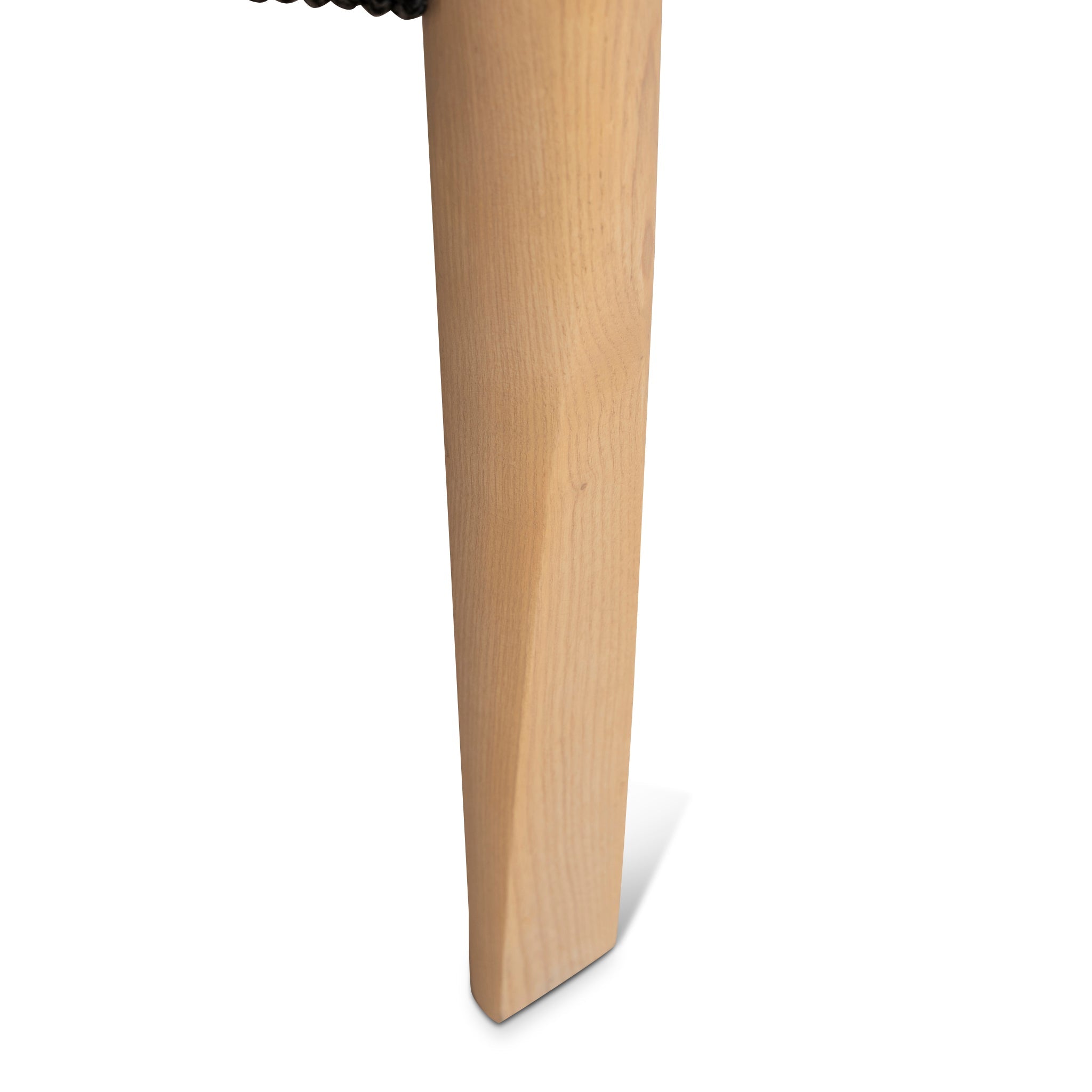 Solid ash wood frame in a natural finish Finished with NC coating Ash wood legs Charcoal black rope woven seat Medium-firm seat Open-back silhouette Rounded edges and seamless joints Weight Capacity: 150 kg Product comes fully assembled