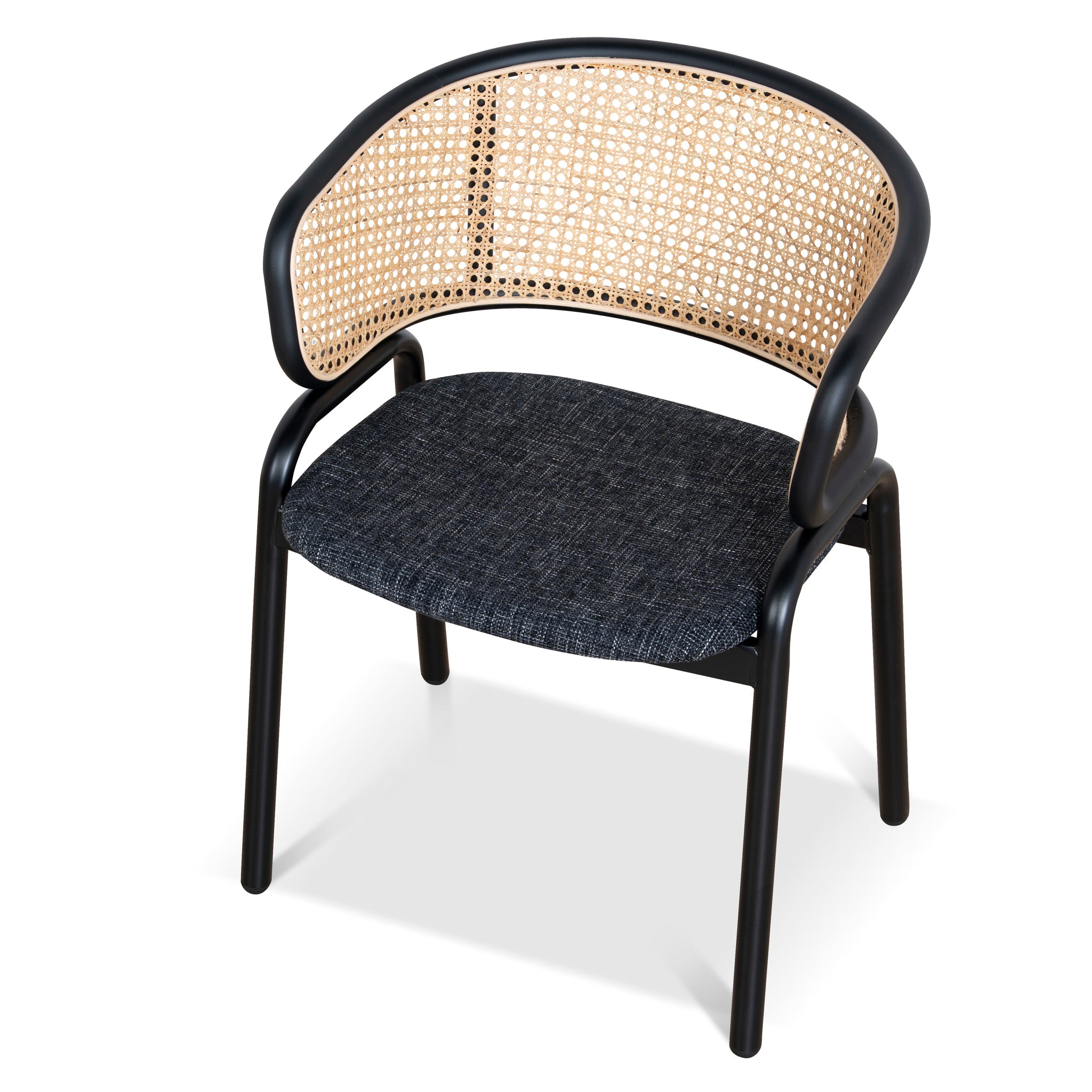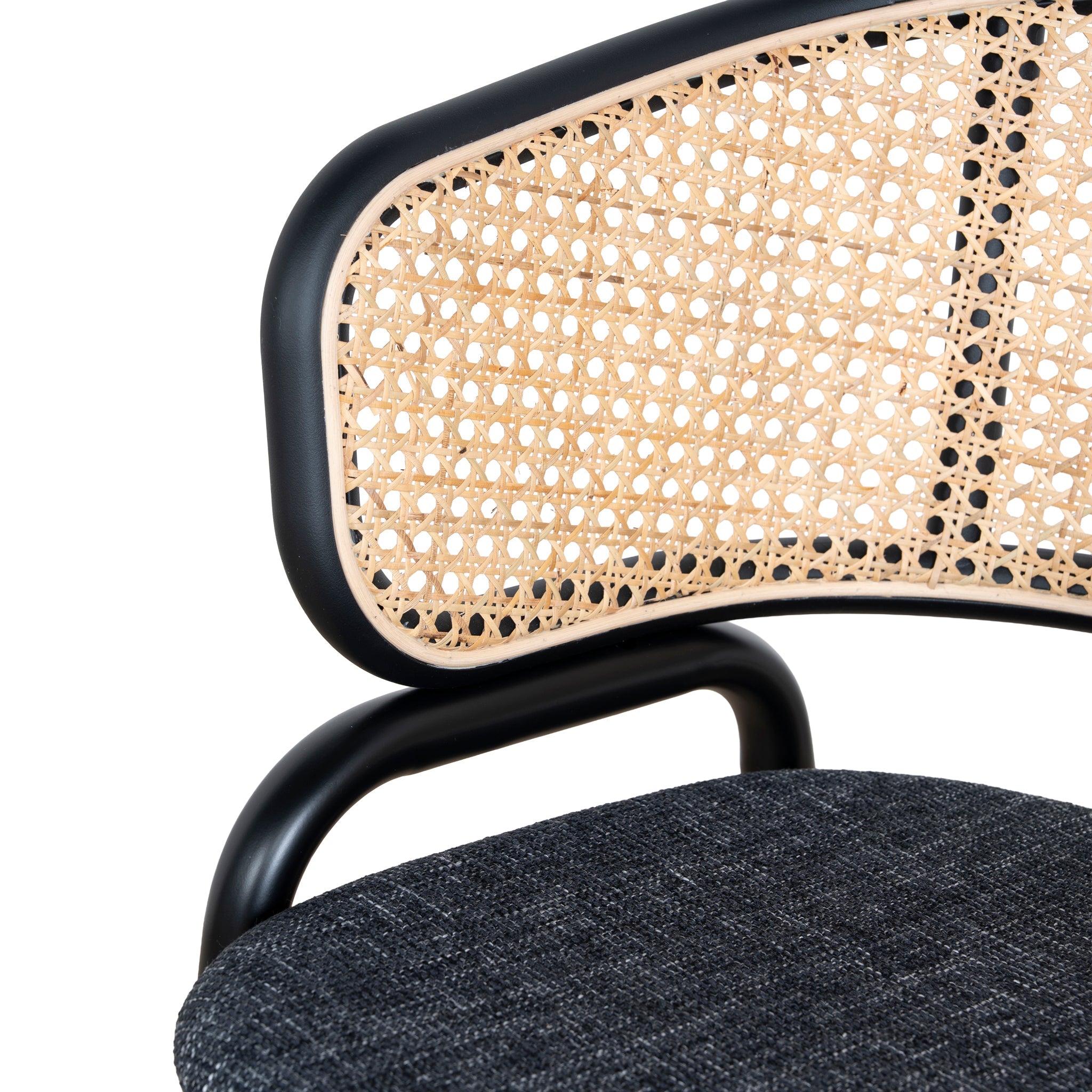 Fabric Dining Chair - Dark Grey with Rattan Back (Set of 2)