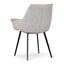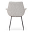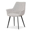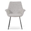 Pepper boucle fabric upholstery High-density foam insert Iron and plywood construction Tub chair silhouette with waterfall seat Flared and square tapered legs Weight limit of 130kg Product is flat packed and requires two-person assembly Note: Not applicable for commercial use.