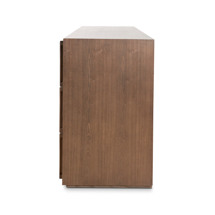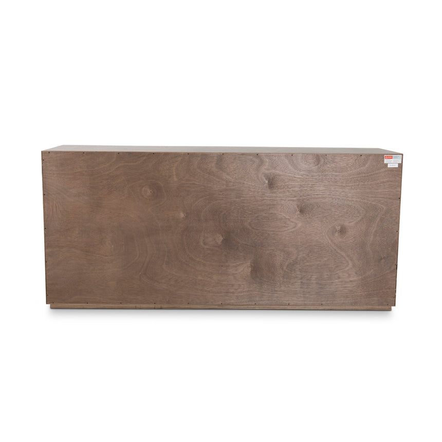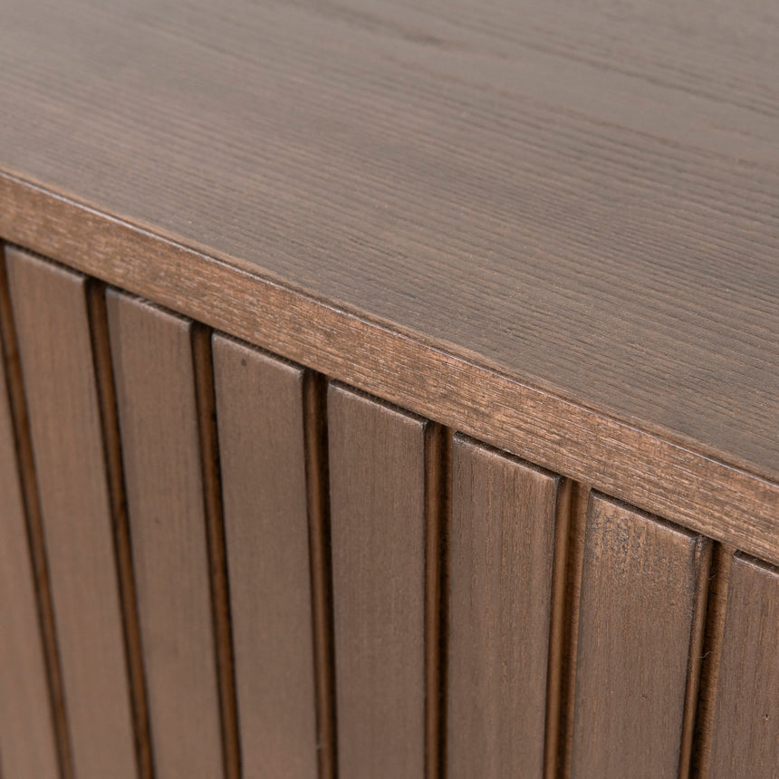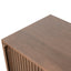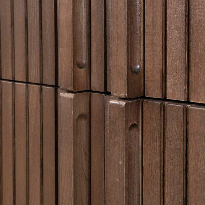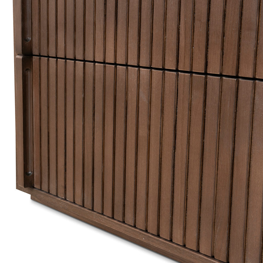 Solid ash wood drawer construction Natural veneer plywood top surface Walnut oil base Vertical grooves Practical storage with high-end style Rich walnut finish Seamless integrated handles Weight Capacity: 150 kg Product comes fully assembled
