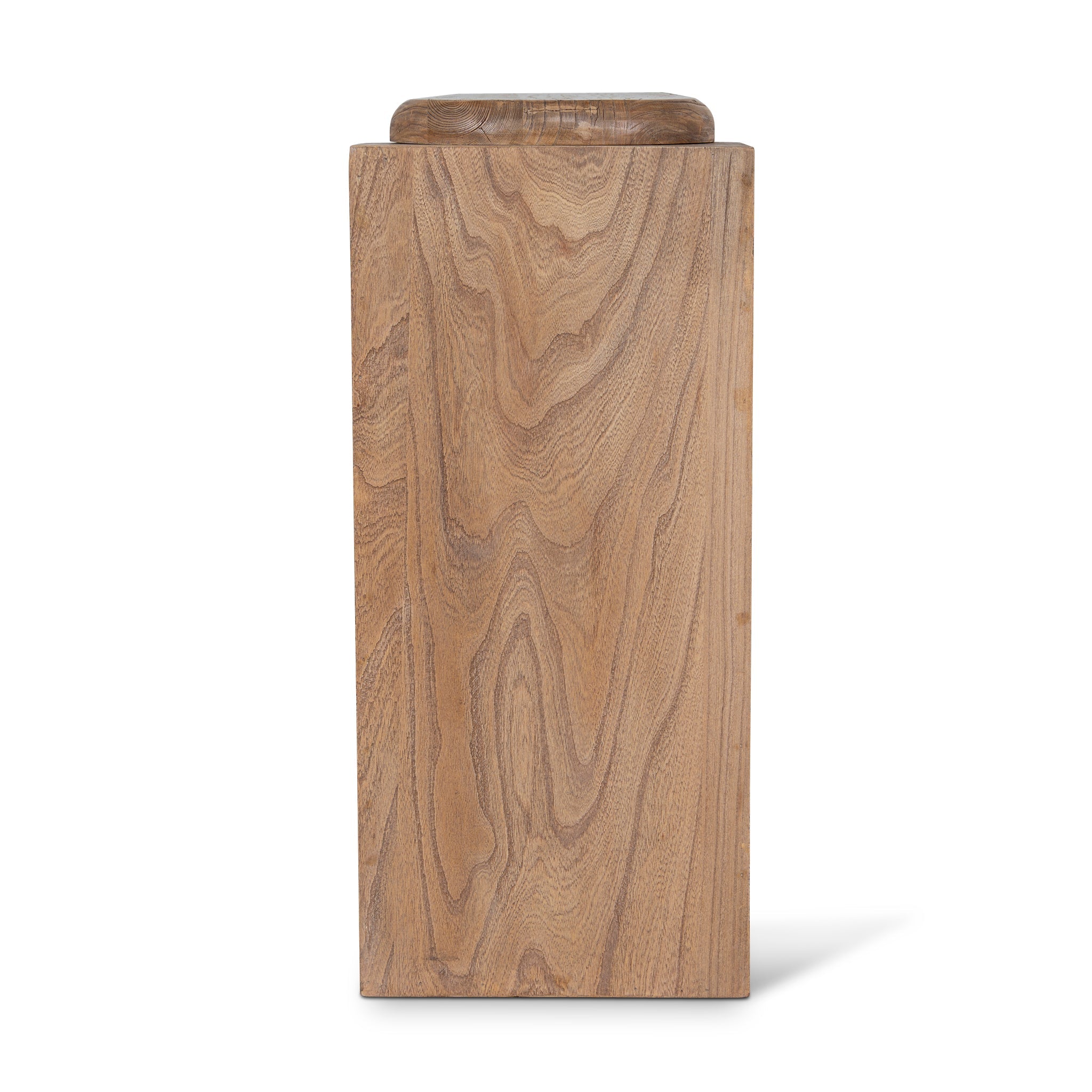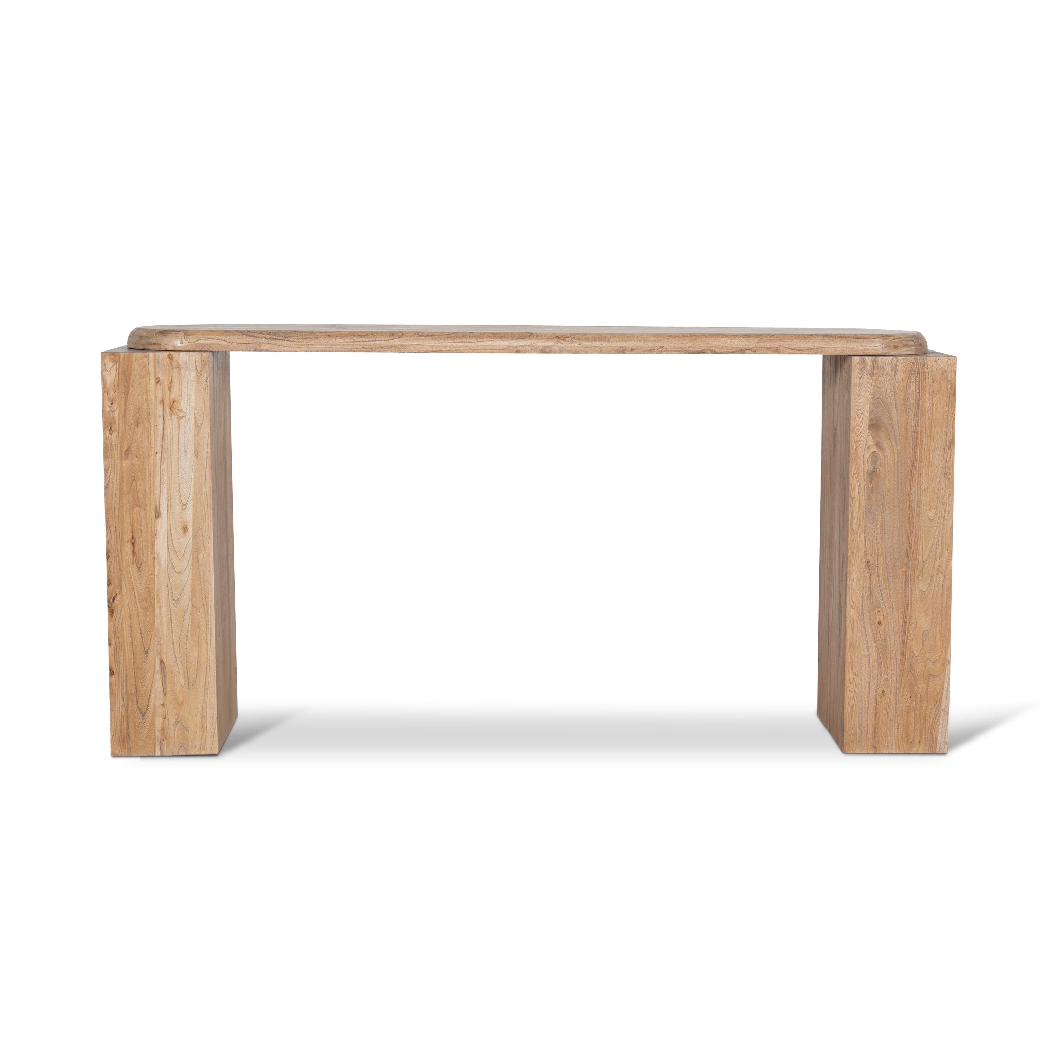 Reclaimed elm wood construction Clean-lined silhouette with a minimalist profile Wide tabletop surface Smooth finish highlights unique wood grain patterns Block-style legs Weight Capacity: 100 kg This product is supplied flat-packed and requires assembly by two people