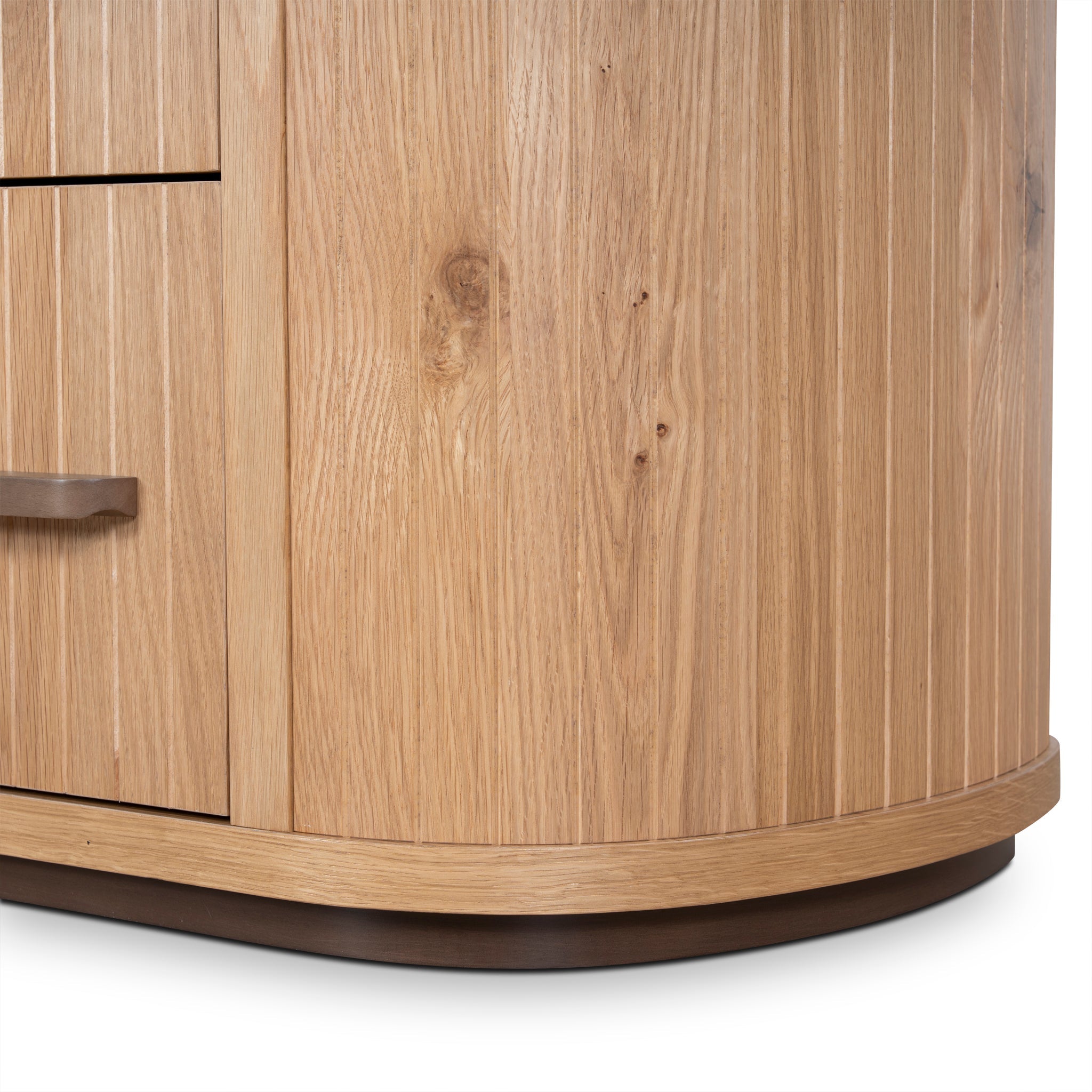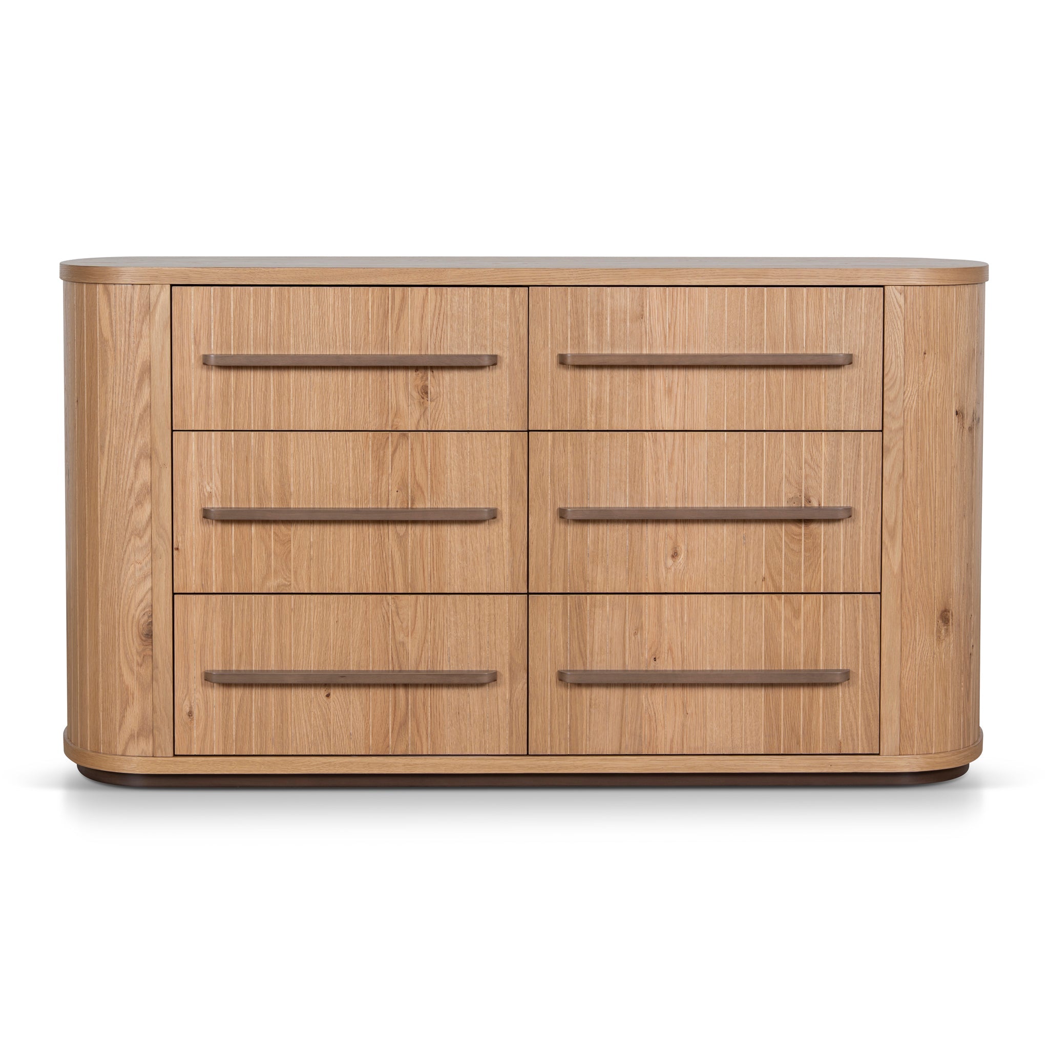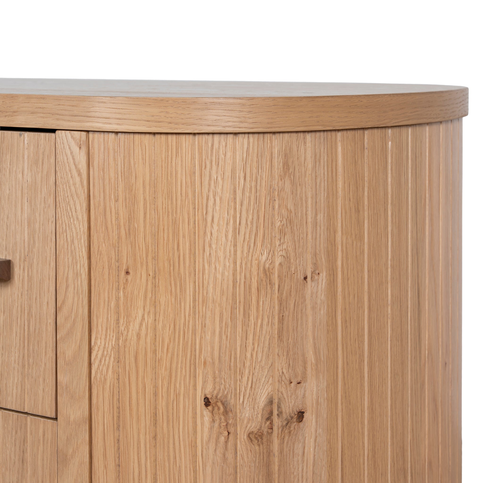 Knotty Oak veneer on composite board with veneer edging Composite board plinth stained WTH Side panels with V-groove detailing Solid EU Beech vertical rails stained French dovetail drawer construction Soft-closing Chinese runners for quiet glide Drawer fronts in Knotty Oak veneer with V-groove pattern Drawer sides, backs, and bottoms in Pigment PPC 1 composite board Solid Beech handles in WTH stain Weight capacity: Top 25.5 kg / Drawer box 3.5 kg Minor assembly required