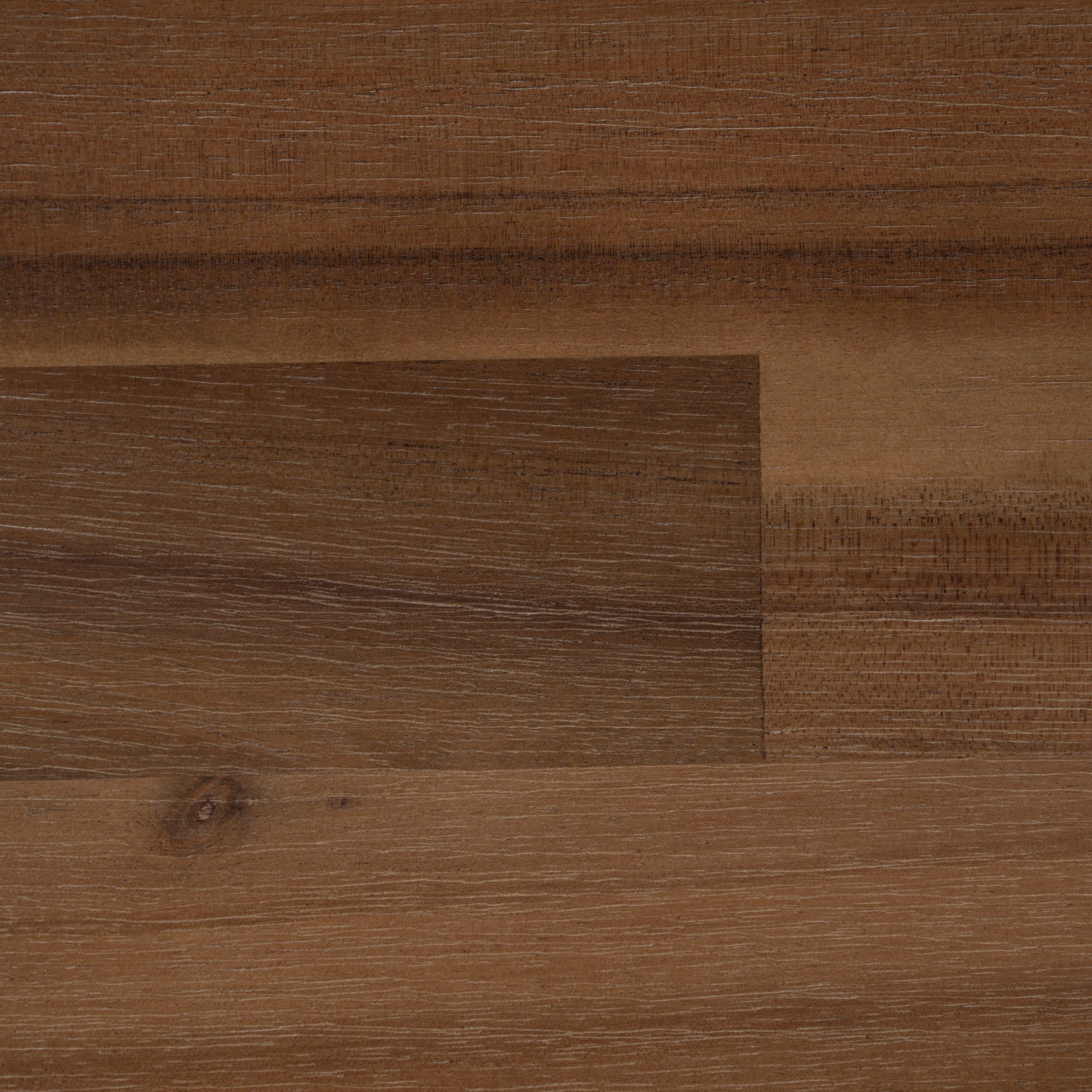 Solid acacia tabletop with teak-look finish Powder-coated steel pedestal frame Natural wood grain variation Soft rounded edge profile Clean central column silhouette Maximised legroom and flexible seating Minor assembly required