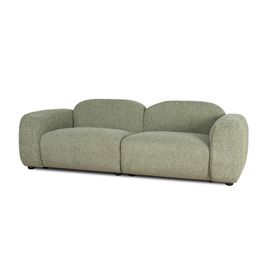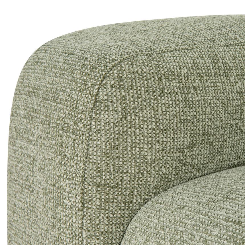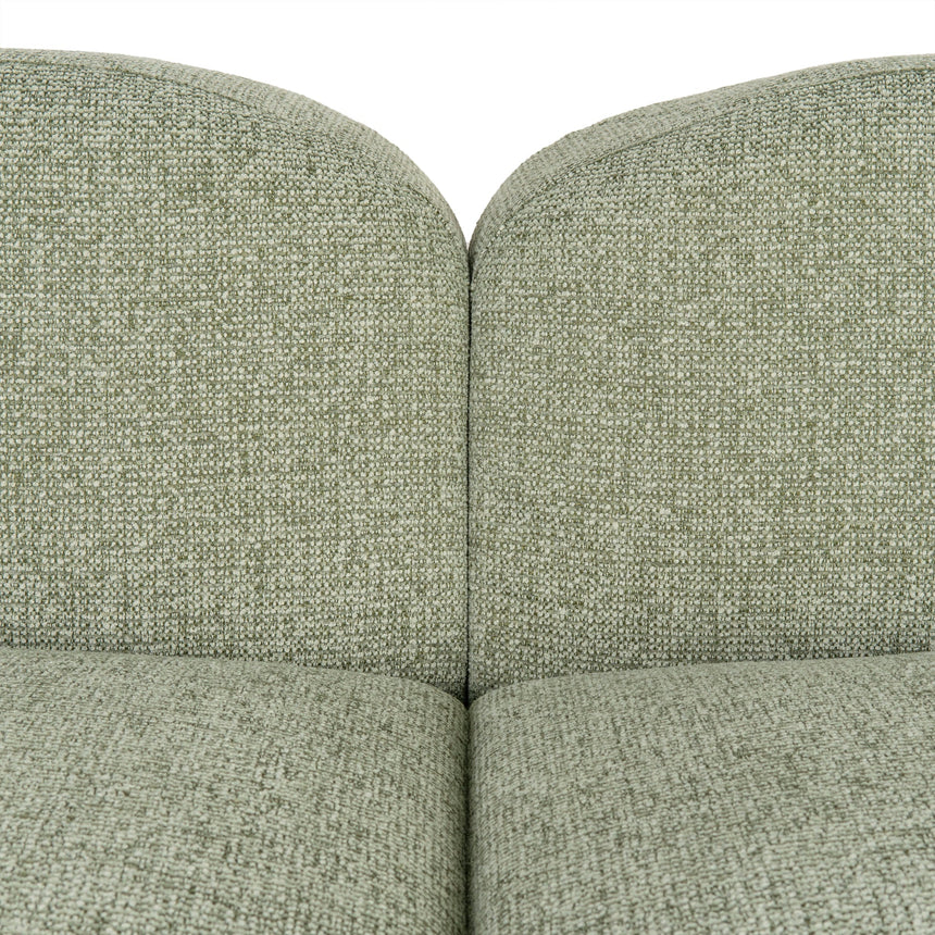Coral light green polyester upholstery Wood frame with plywood construction Spring suspension Rubberwood timber legs Foam filling Modern low-profile design Textured for visual interest Distributed weight capacity of up to: 250 kg Assembly Information: Please note that the feet of the sofa should be positioned in the desired location, ensuring the screws are secured within the corner wooden frame. There are no pre-marked spots for the feet, allowing flexibility in alignment and visibility of the feet for aesthetic preferences. An electric drill is required to secure the screws into the feet for proper assembly. The sofa does not require the connectors for regular use, but they are supplied as an optional feature. If you wish to lock the two sofa sections in place, position the sections together and drill in the connectors along the edge of the base frame, following the indicated line.
