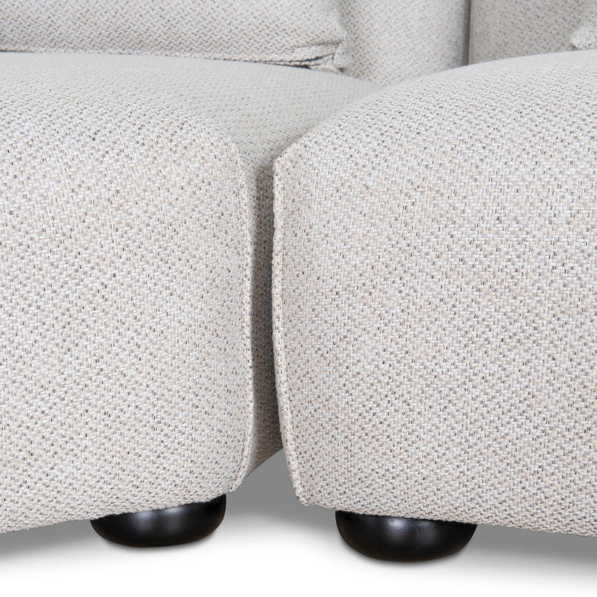 Sterling sand polyester upholstery Pinewood frame Rubber wood legs Spring suspension Soft-medium seat firmness Foam filling Sleek, rounded silhouette Sectional design allows customisable arrangements Weight Capacity: 500 kg Minor Assembly Required
