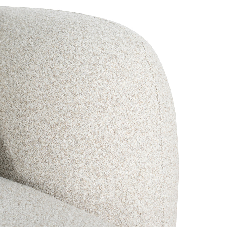 81% polypropylene and 19% polyester upholstery Pinewood frame construction Rubber legs Spring suspension system Foam filling with soft-medium seat firmness Oatmeal beige fabric Curved sculptural design Right-facing chaise Distributed weight capacity of up to 480 kg Minor Assembly Required