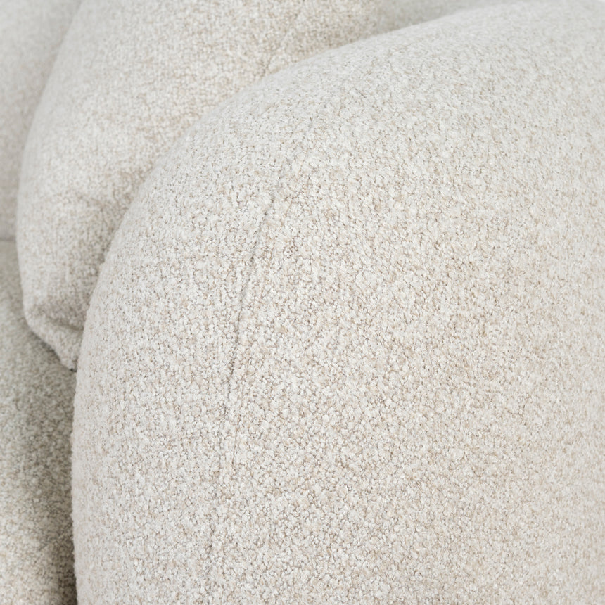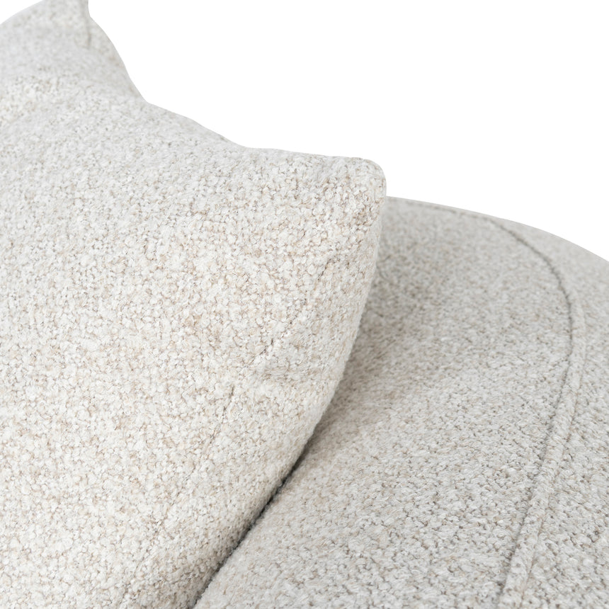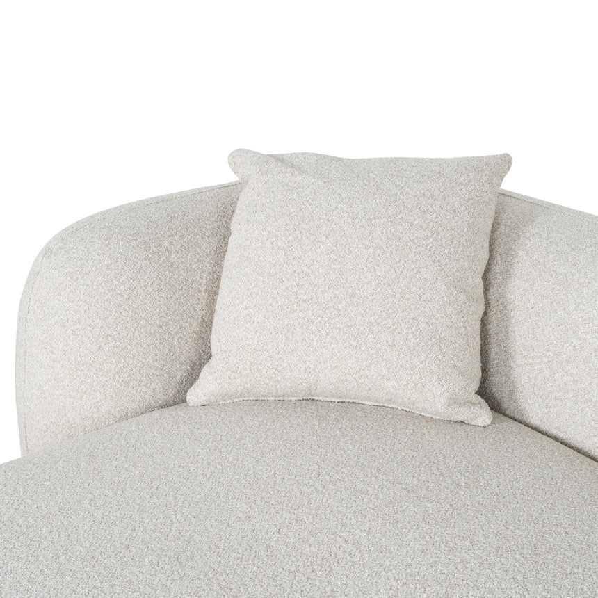 81% polypropylene and 19% polyester upholstery Pinewood frame construction Rubber legs Spring suspension system Foam filling with soft-medium seat firmness Oatmeal beige fabric Curved sculptural design Left-facing chaise Distributed weight capacity of up to 480 kg Minor assembly required