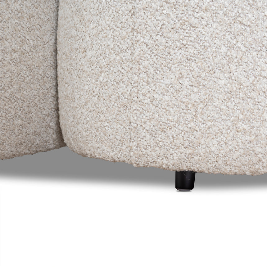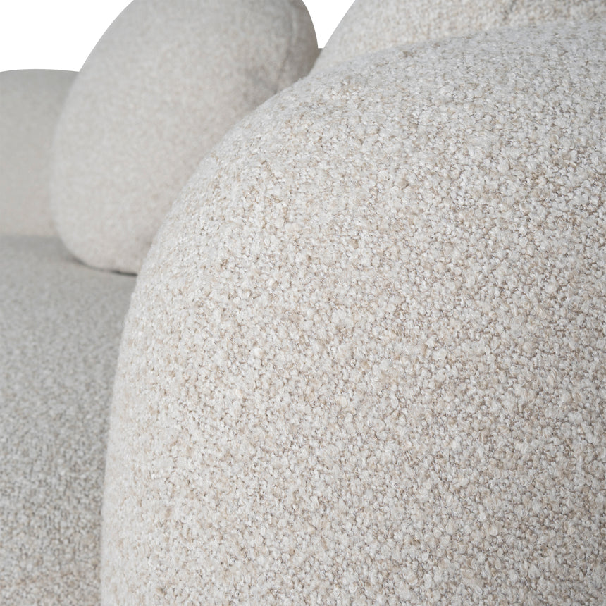 81% polypropylene and 19% polyester upholstery Pinewood frame construction Rubber legs Spring suspension system Foam filling with soft-medium seat firmness Oatmeal beige fabric Curved sculptural design Modular seating Distributed weight capacity of up to 480 kg Minor assembly required