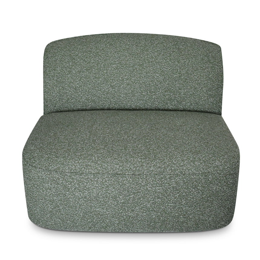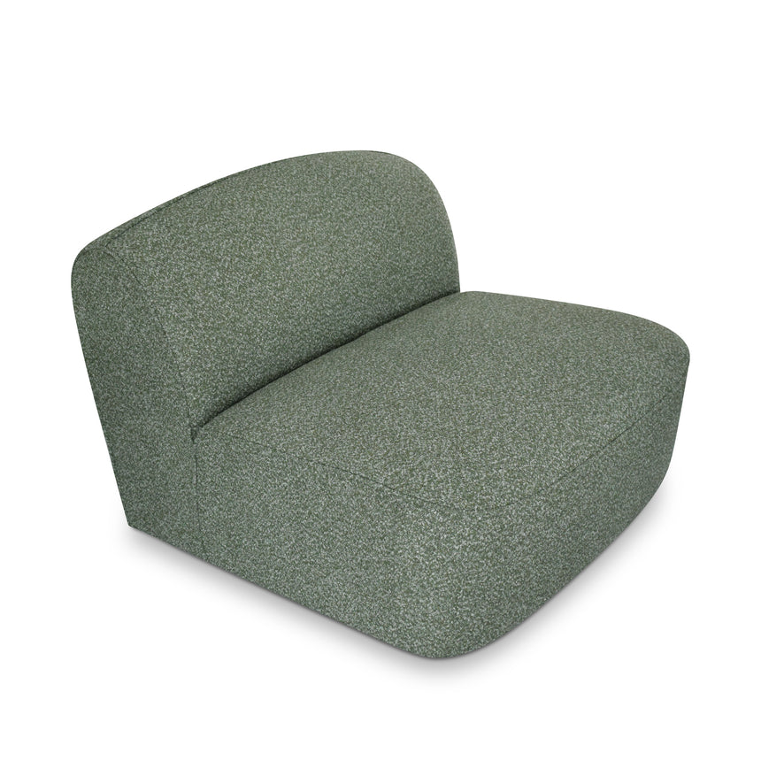 81% polypropylene and 19% polyester upholstery Pinewood frame construction Plastic legs Spring suspension system Foam filling with soft-medium seat firmness Smooth organic curves Amazon green finish Right-facing chaise Distributed weight capacity of up to 360 kg Minor assembly required