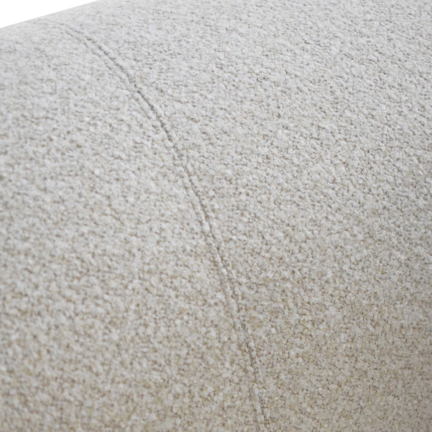 81% polypropylene and 19% polyester upholstery Pinewood frame construction Plastic legs Spring suspension system Foam filling with soft-medium seat firmness Clean low-profile silhouette with curved edges Oatmeal beige finish Rounded armrests and smooth backrest Distributed weight capacity of up to 480 kg Minor Assembly Required