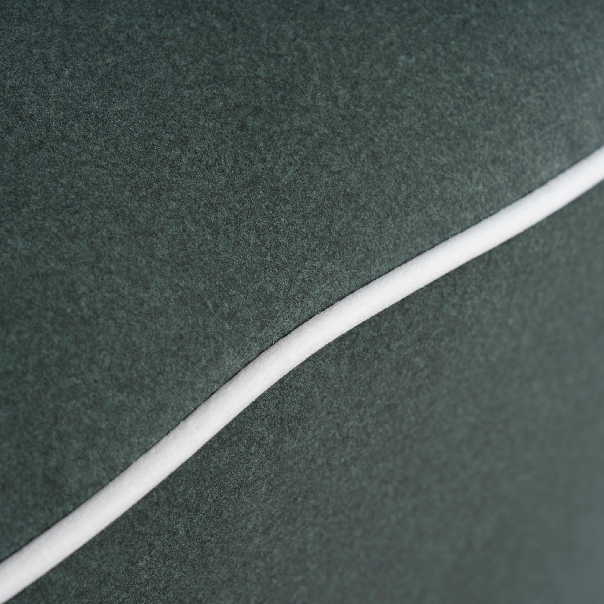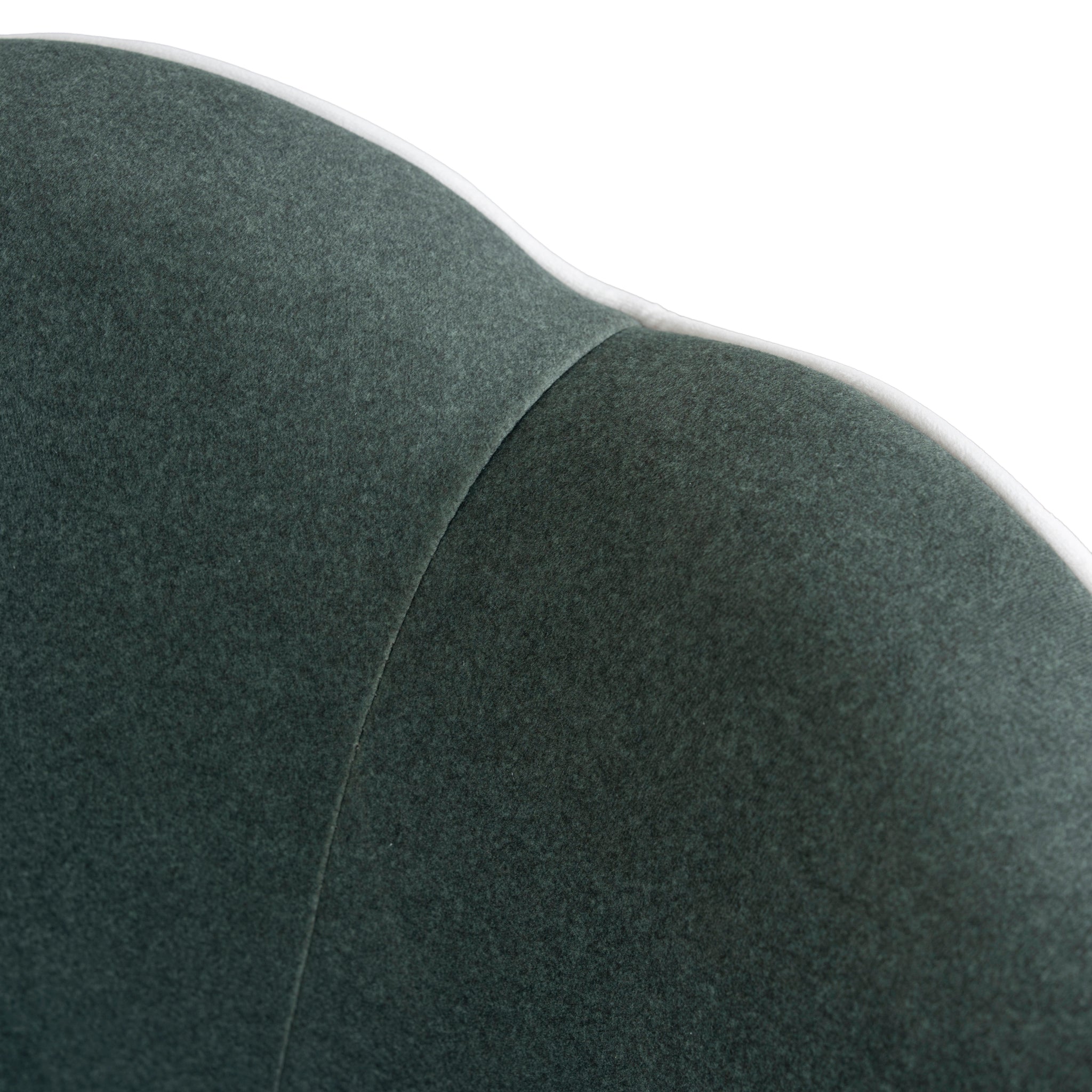 Burnt green polyester upholstery Pine wood frame and legs Spring suspension Foam filling Soft-medium seat firmness Curved scalloped backrest Soft flowing edges Weight capacity: 150 kg Minor assembly required