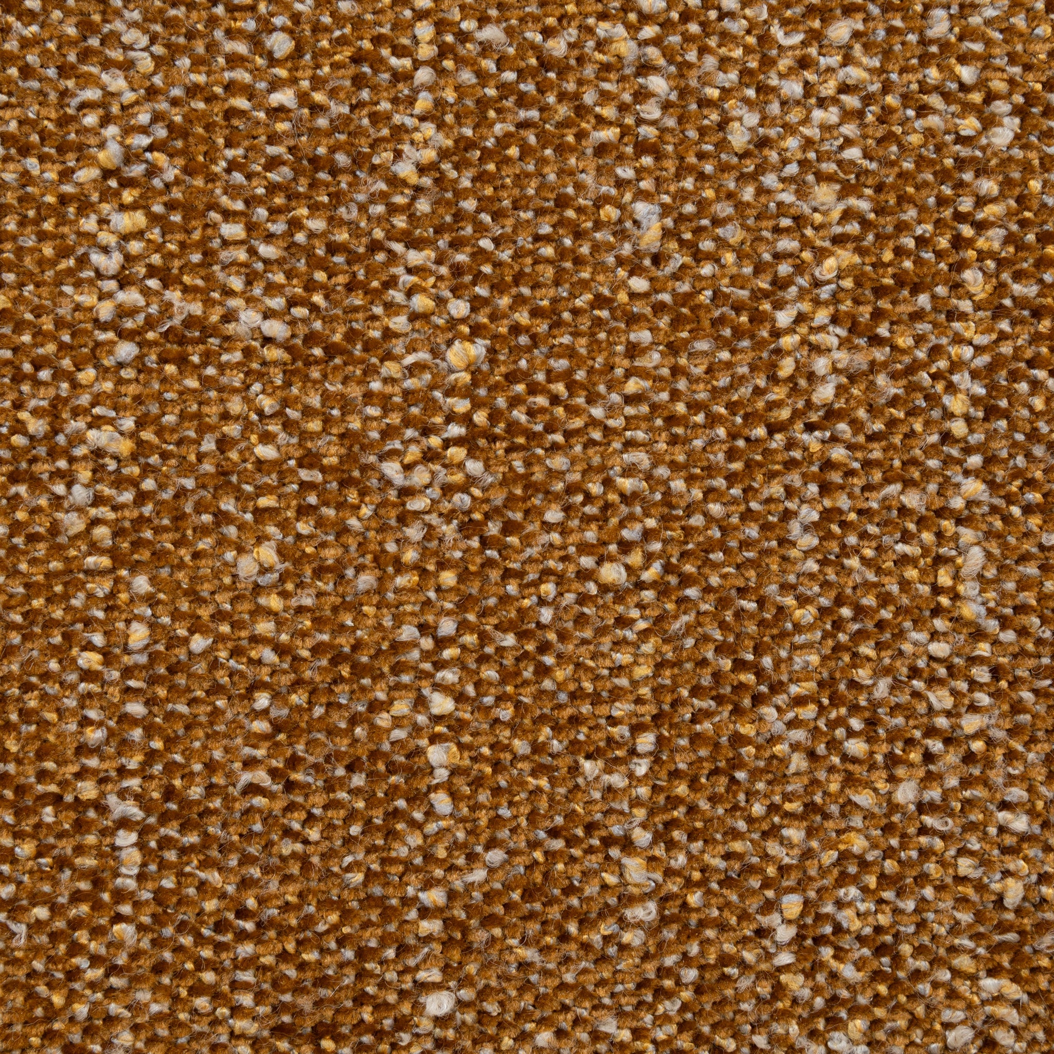 Ginger brown polyester upholstery Pinewood and plywood frame Web suspension Black metal swivel base Filled with fiber and feather Soft-medium seat firmness Gently curved arms Bold, rounded silhouette Weight Capacity: 120 kg Minor Assembly Required