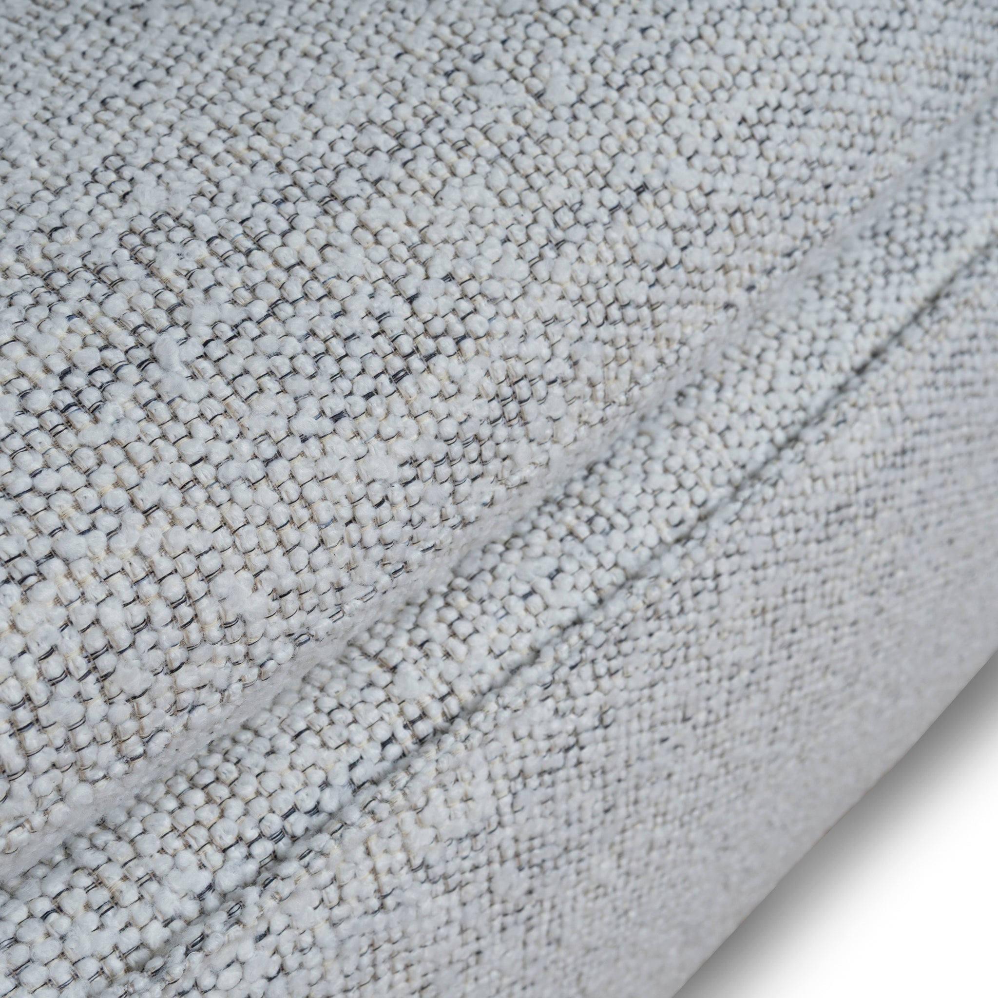 Fog grey polyester upholstery Pinewood and plywood frame construction Web and spring suspension Foam and fiber filling Rounded silhouette with softly sloped armrests and backrest Low-profile base Rubber legs Weight Capacity: 120 kg Minor assembly required
