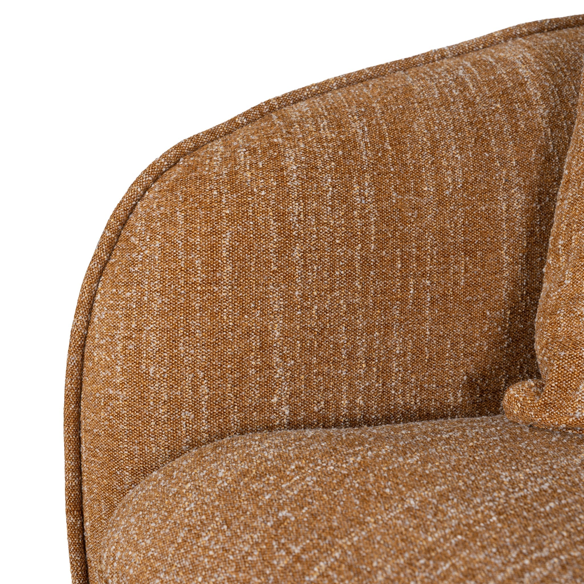 Ginger brown polyester upholstery Pine wood and plywood frame Web suspension Rubber legs Foam and fiber filling Soft-medium seat firmness Smooth, rounded arms and backrest Low-slung design Weight Capacity: 120 kg Minor assembly required