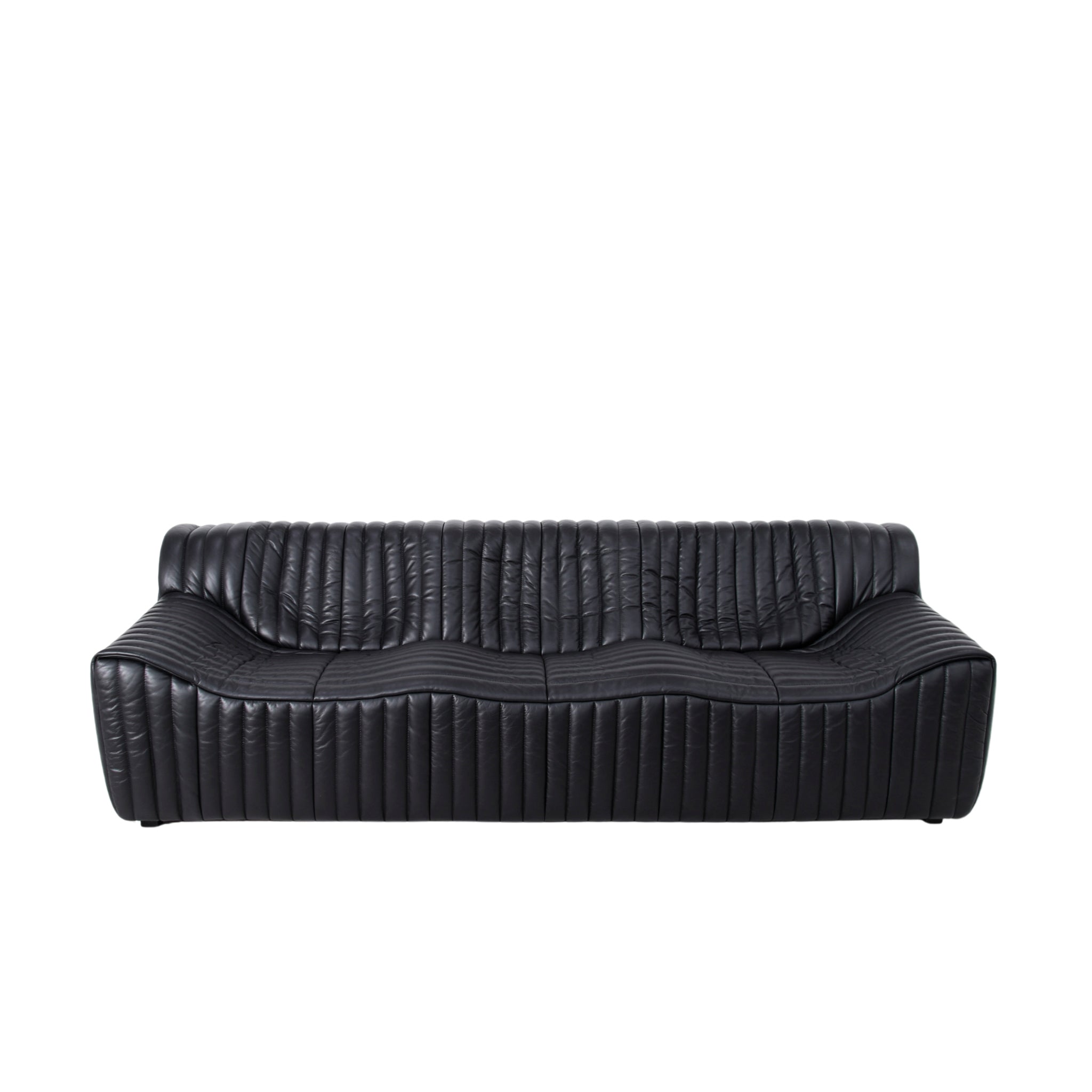 Genuine cow and semi-aniline vintage leather upholstery Solid red meranti wood frame Zigzag spring suspension Rubber wood legs Foam filling Soft-to-medium seat firmness Distinctive pleated design Finished in black leather Weight Capacity: 150 kg Product comes fully assembled