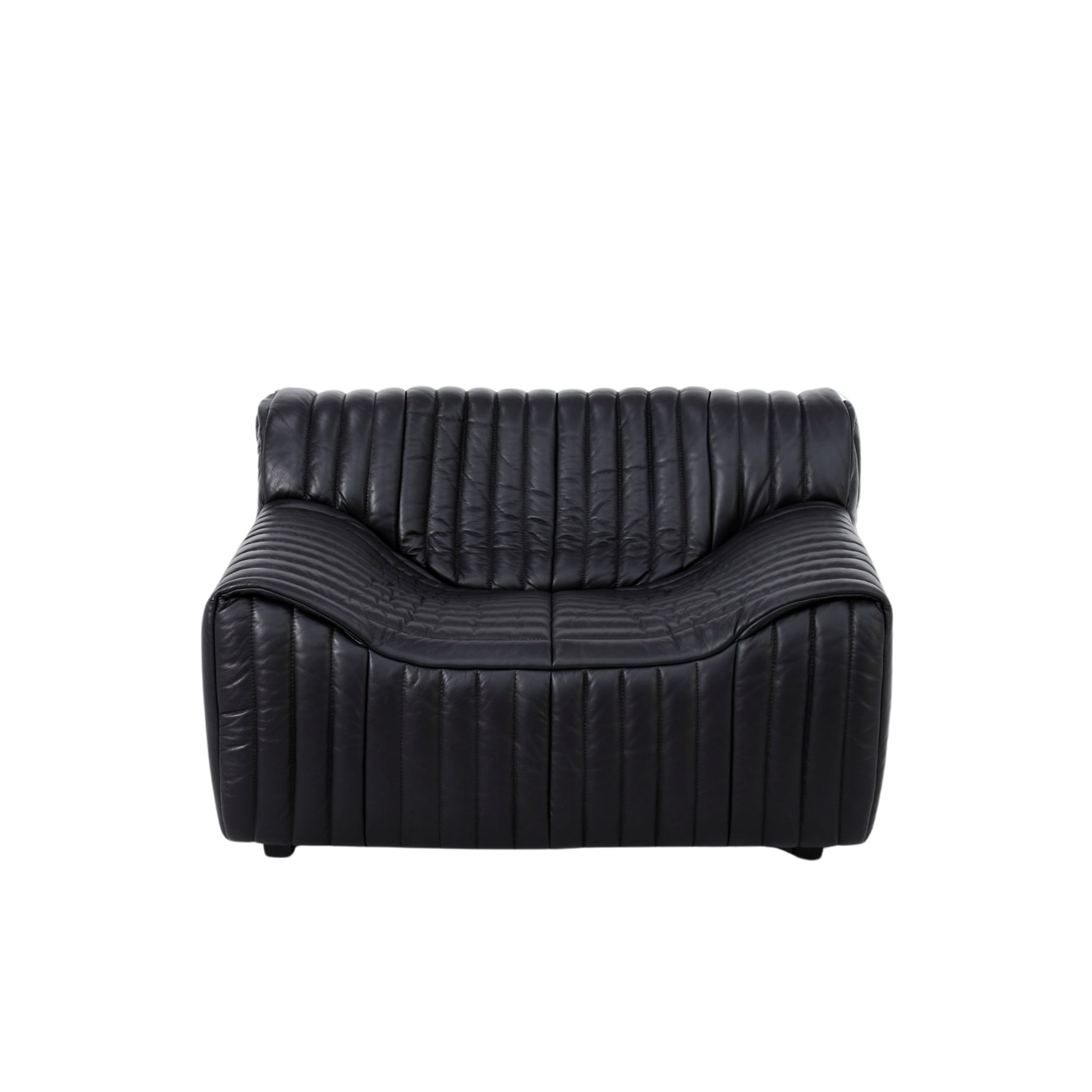 Genuine cow and semi-aniline vintage leather upholstery Solid red meranti wood frame Zigzag spring suspension Rubber wood legs Foam filling Soft-to-medium seat firmness Wide chunky silhouette Finished in black leather Weight Capacity: 150 kg Product comes fully assembled