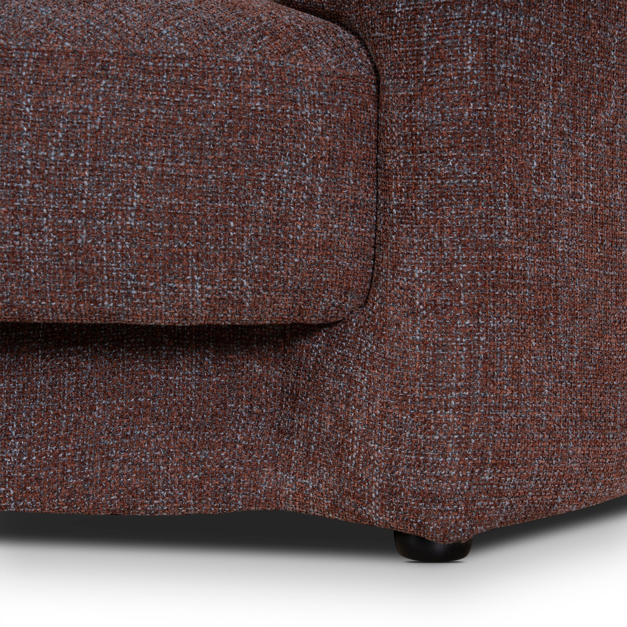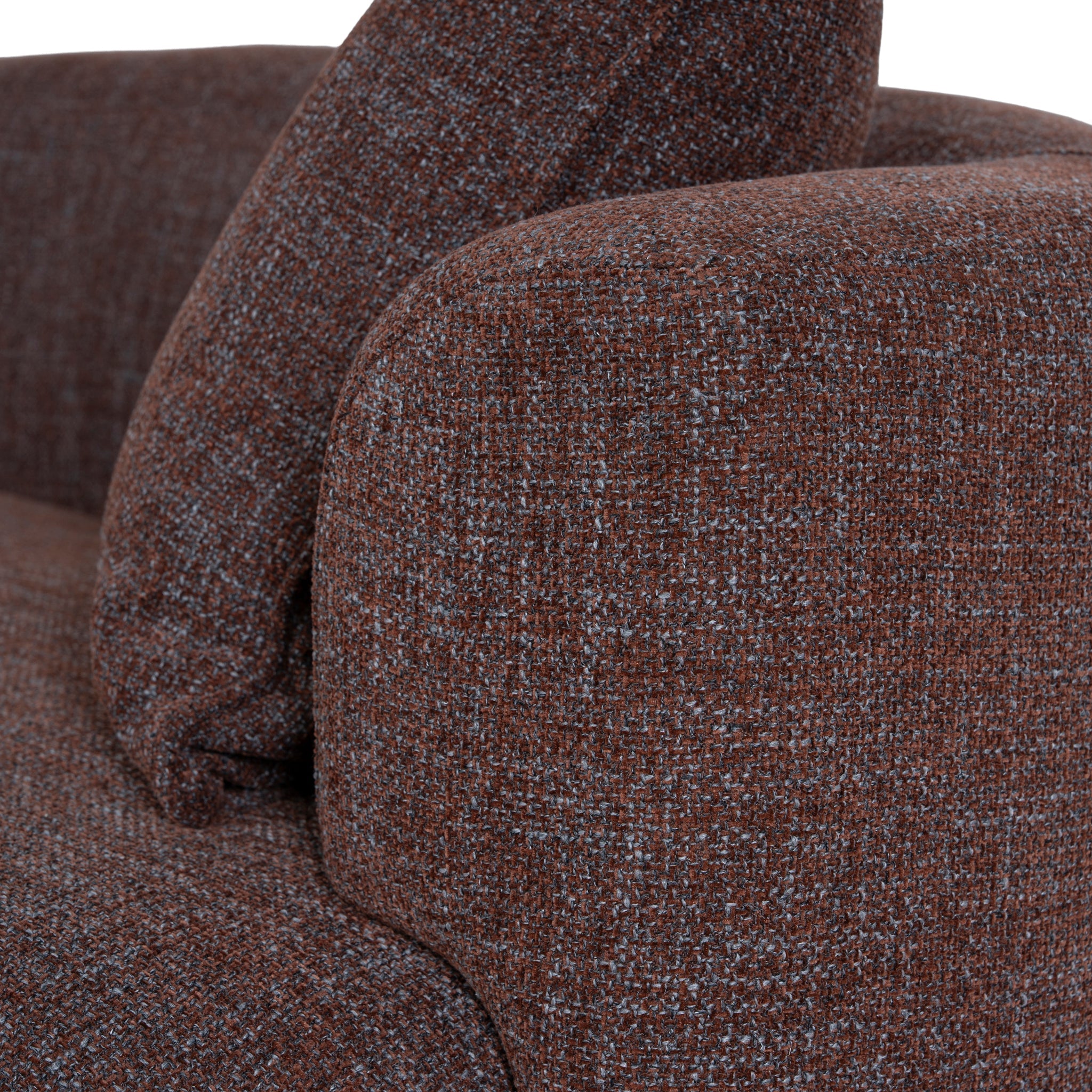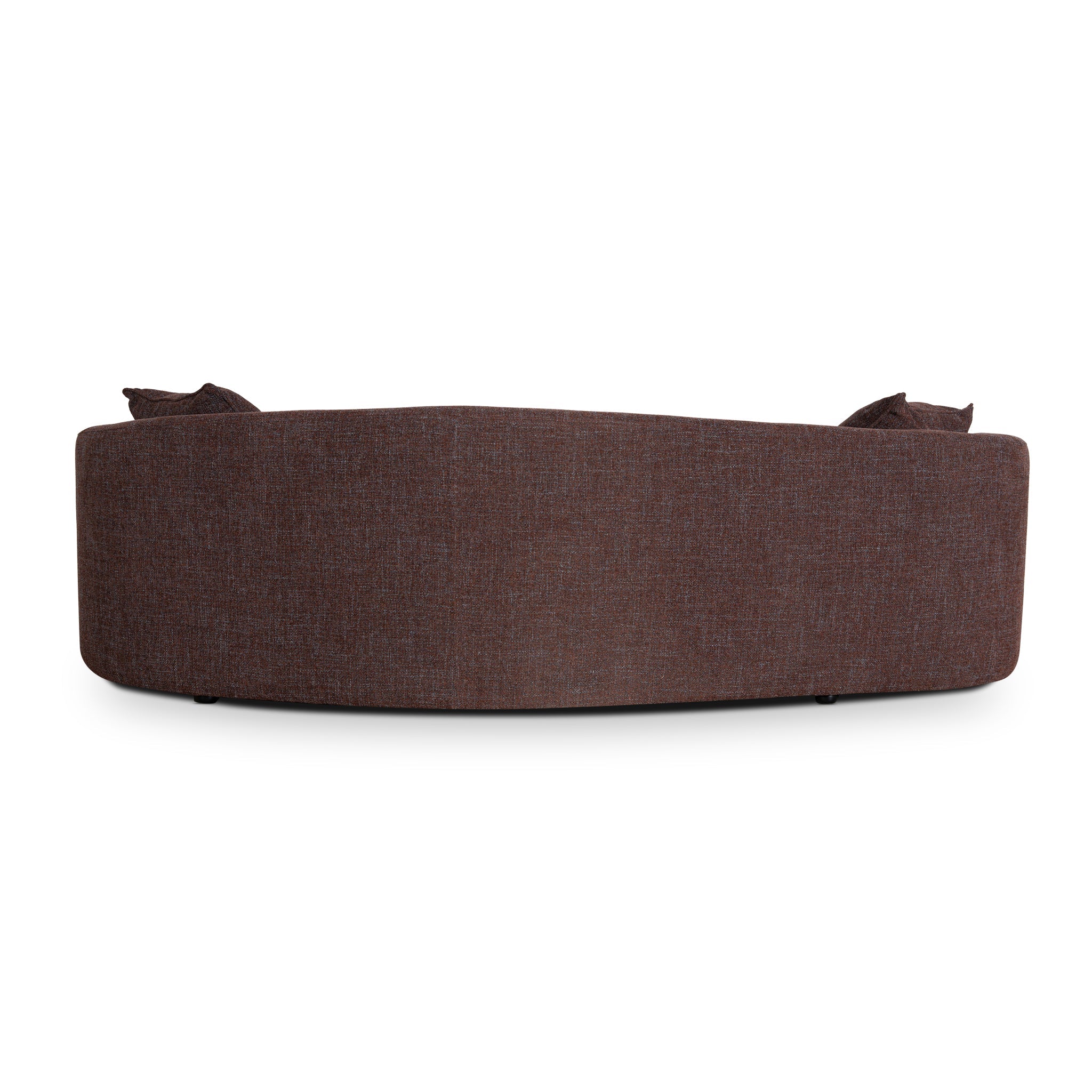 Moss brown polyester upholstery Pine wood frame Web and spring suspension Rubber wood legs Foam filling Soft–medium firmness Sculptural silhouette with sweeping curves Low-profile design Weight Capacity: 200 kg Product comes fully assembled