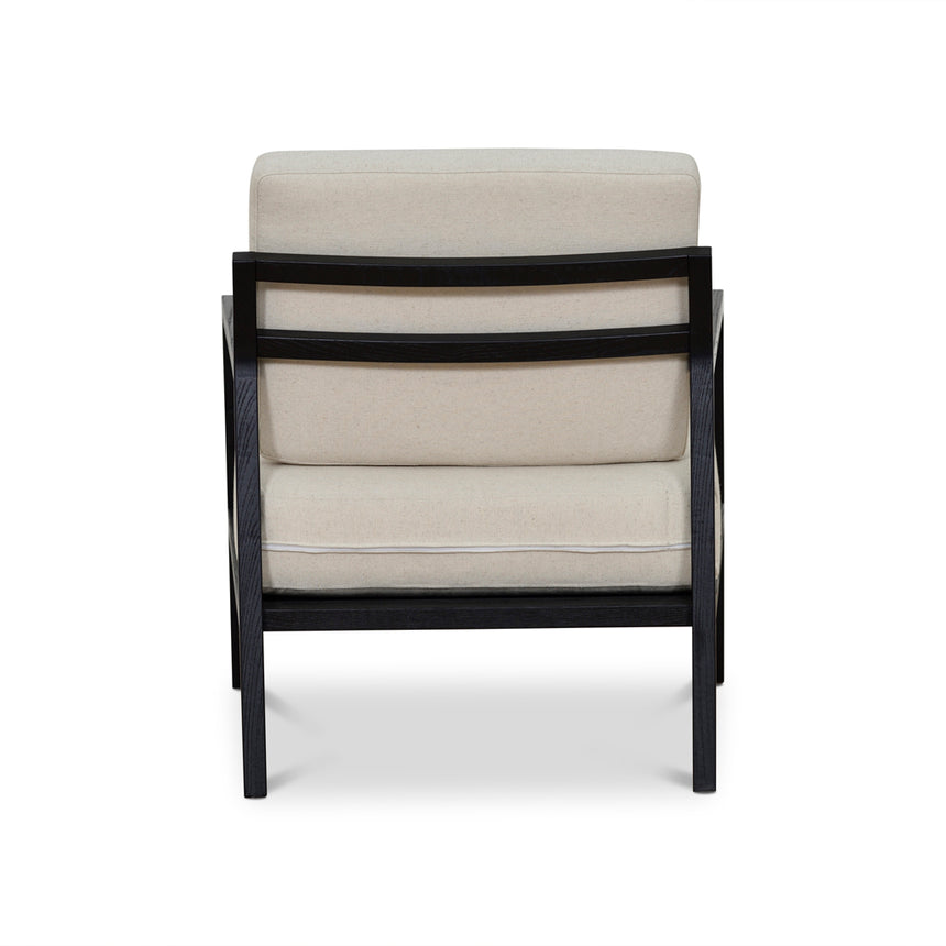 Upholstered in light beige fabric Fabric consists of 60% linen, 40% cotton Foam-filled cushions Oak wood frame Elm wood legs Detachable cushions Soft-medium seat firmness Square-shaped arm and backrest Suitable for commercial use Weight Capacity: 150 kg Product comes fully assembled