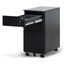 Steel body in a black powder coat finish 2x drawers and 1x cabinet drawer for storage Lockable feature for additional security 4x castor wheels for mobility Pen tray for functionality Suitable for commercial use Minor Assembly Required