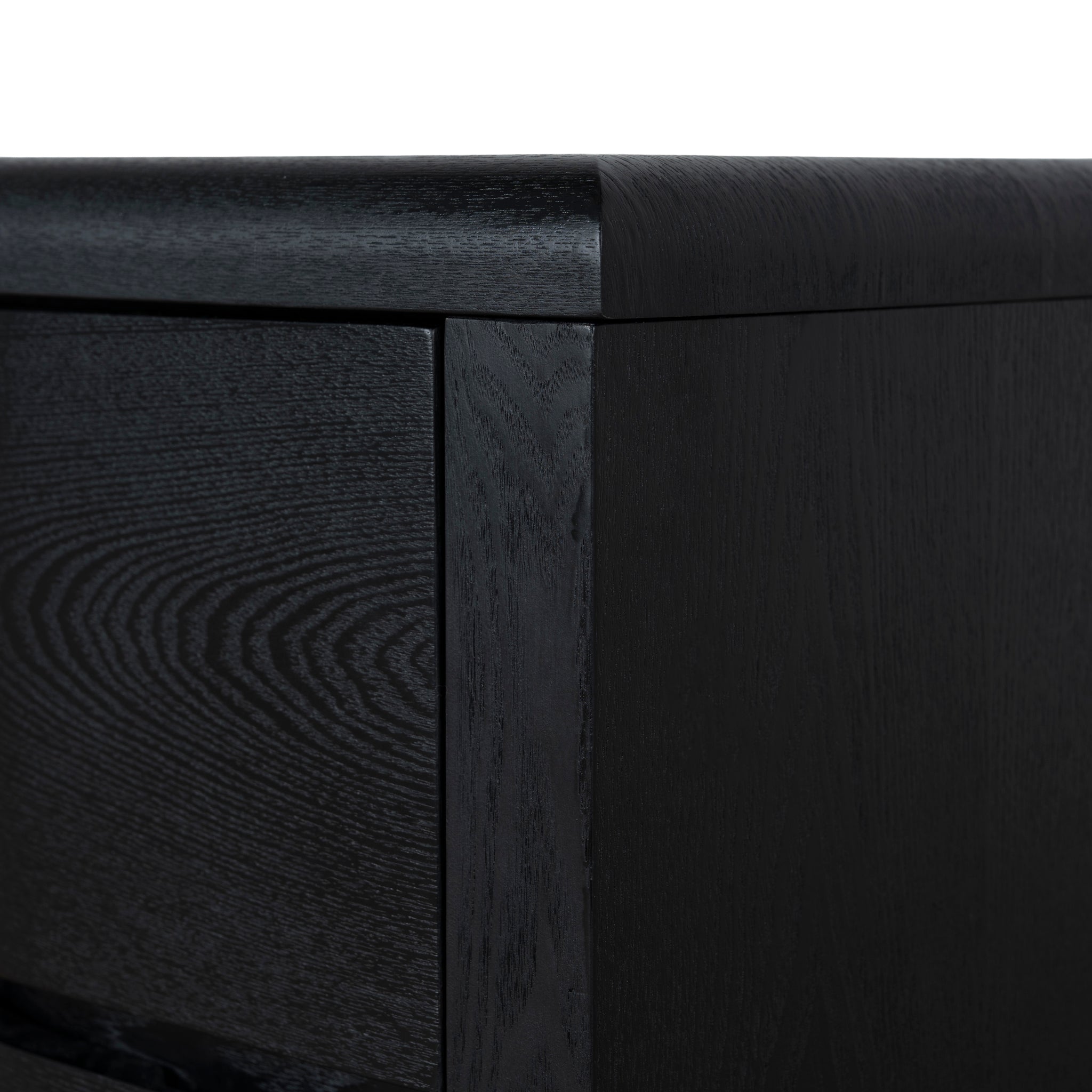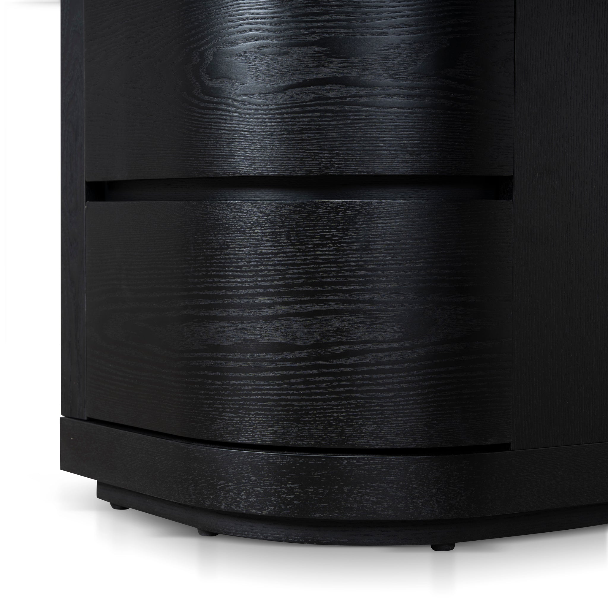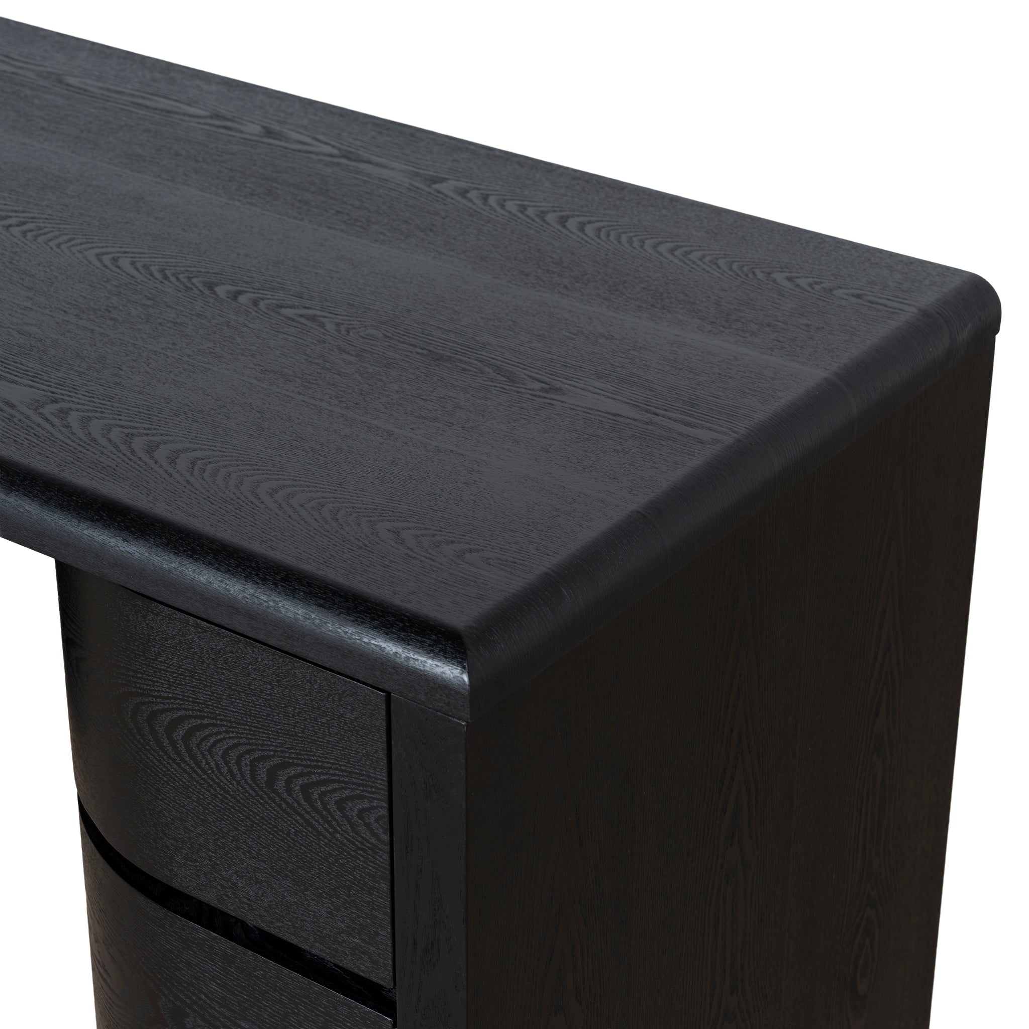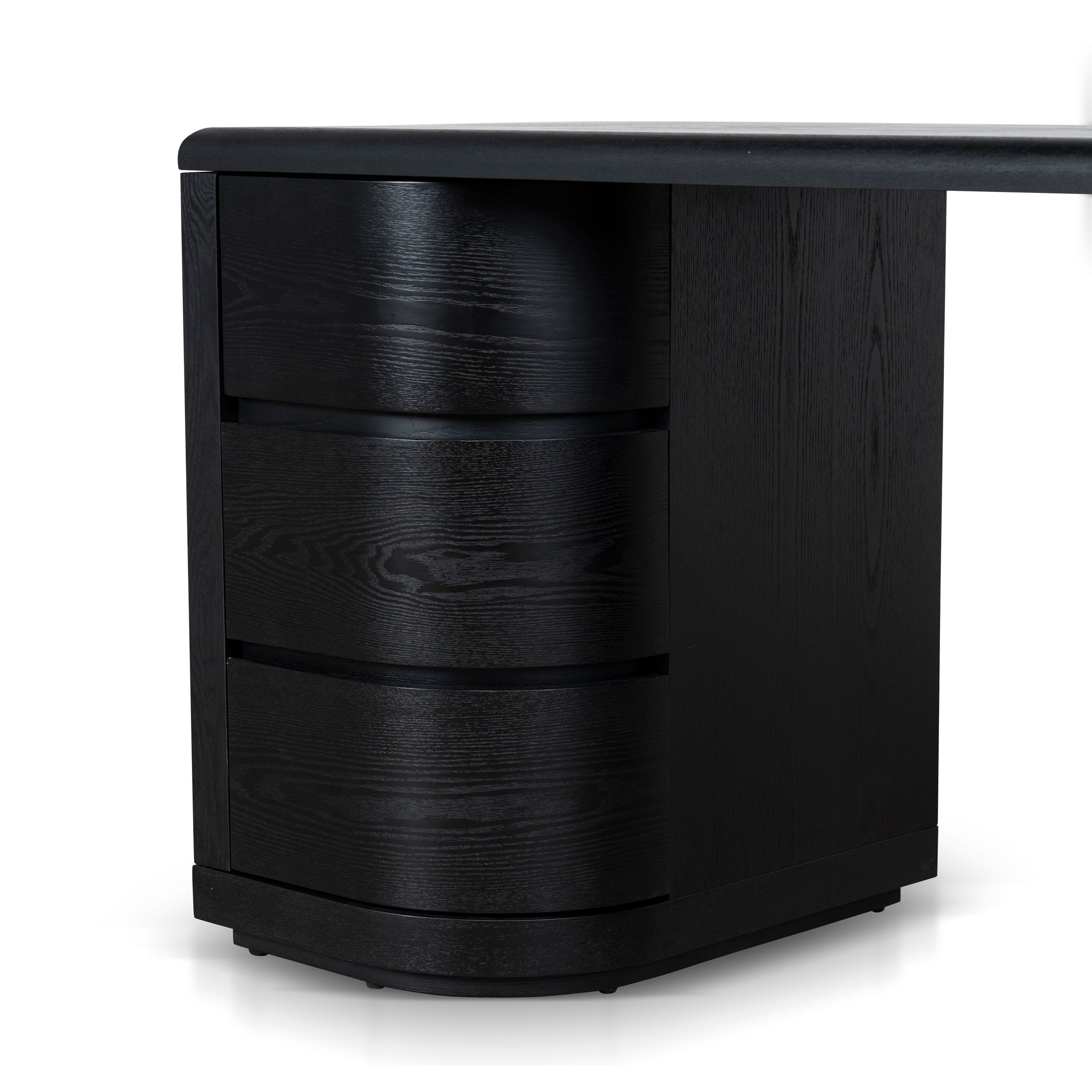 Engineered wood with walnut veneer Triamine board interior drawers Dual pedestal form Smooth, rounded shape Rounded desktop edges Full black finish Six smooth-glide drawers Weight capacity: 100 kg Minor assembly required