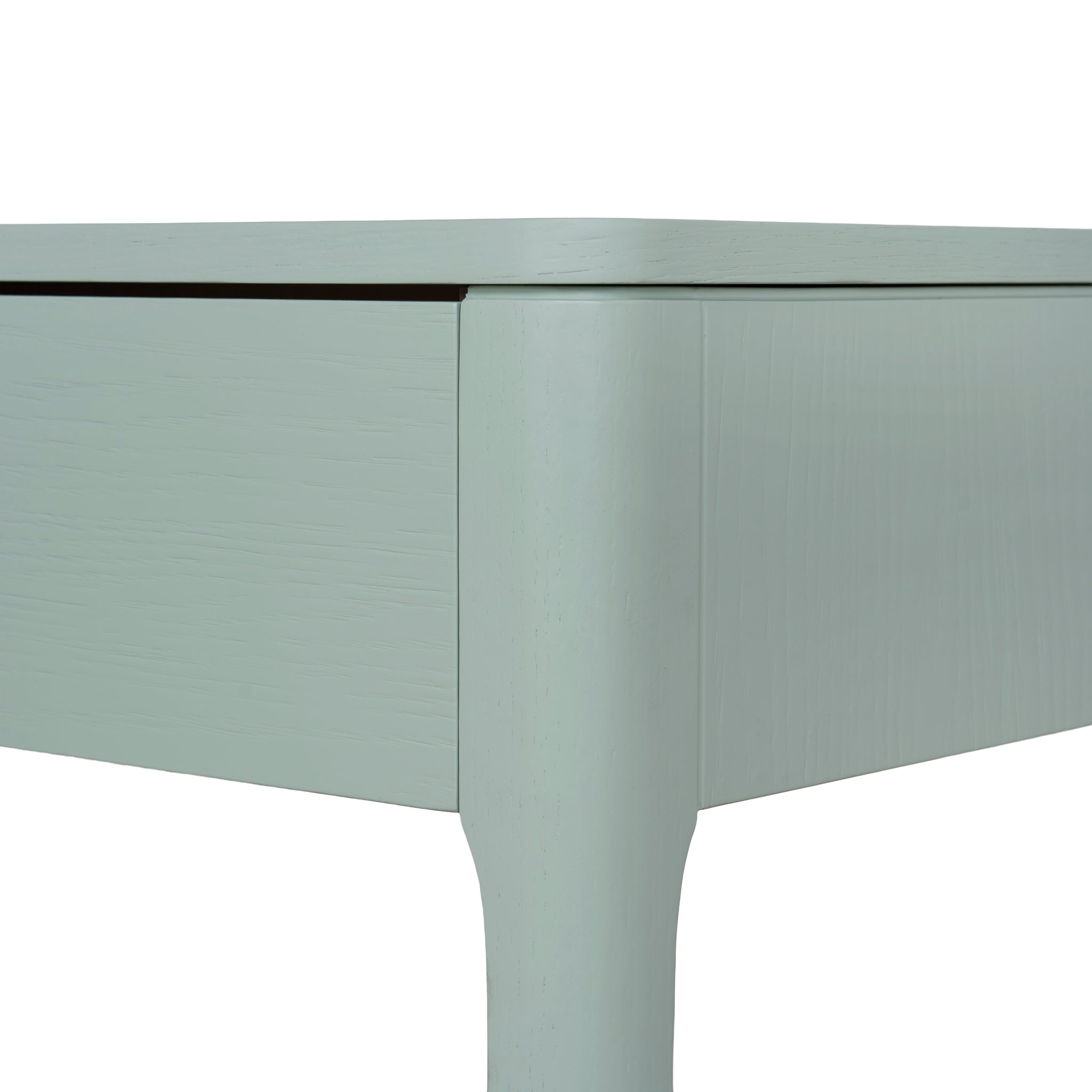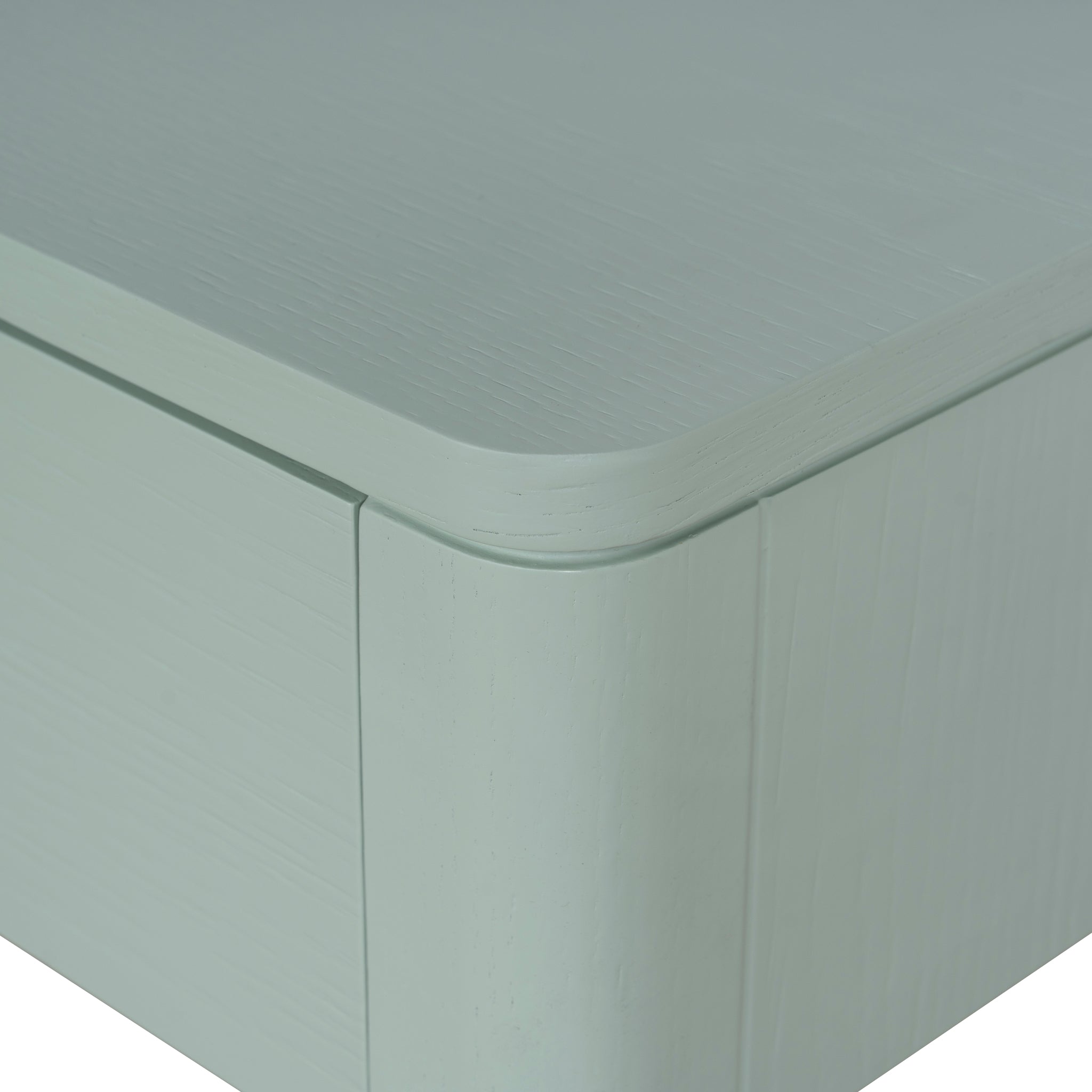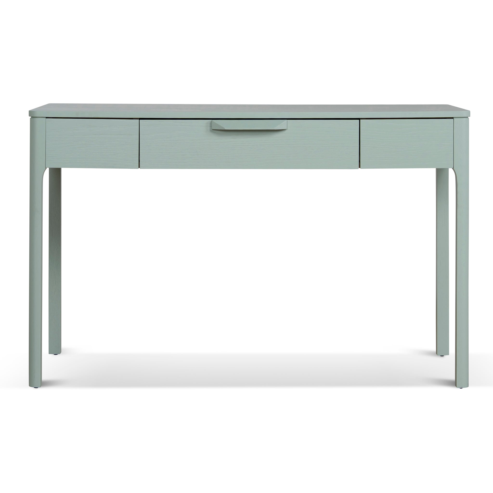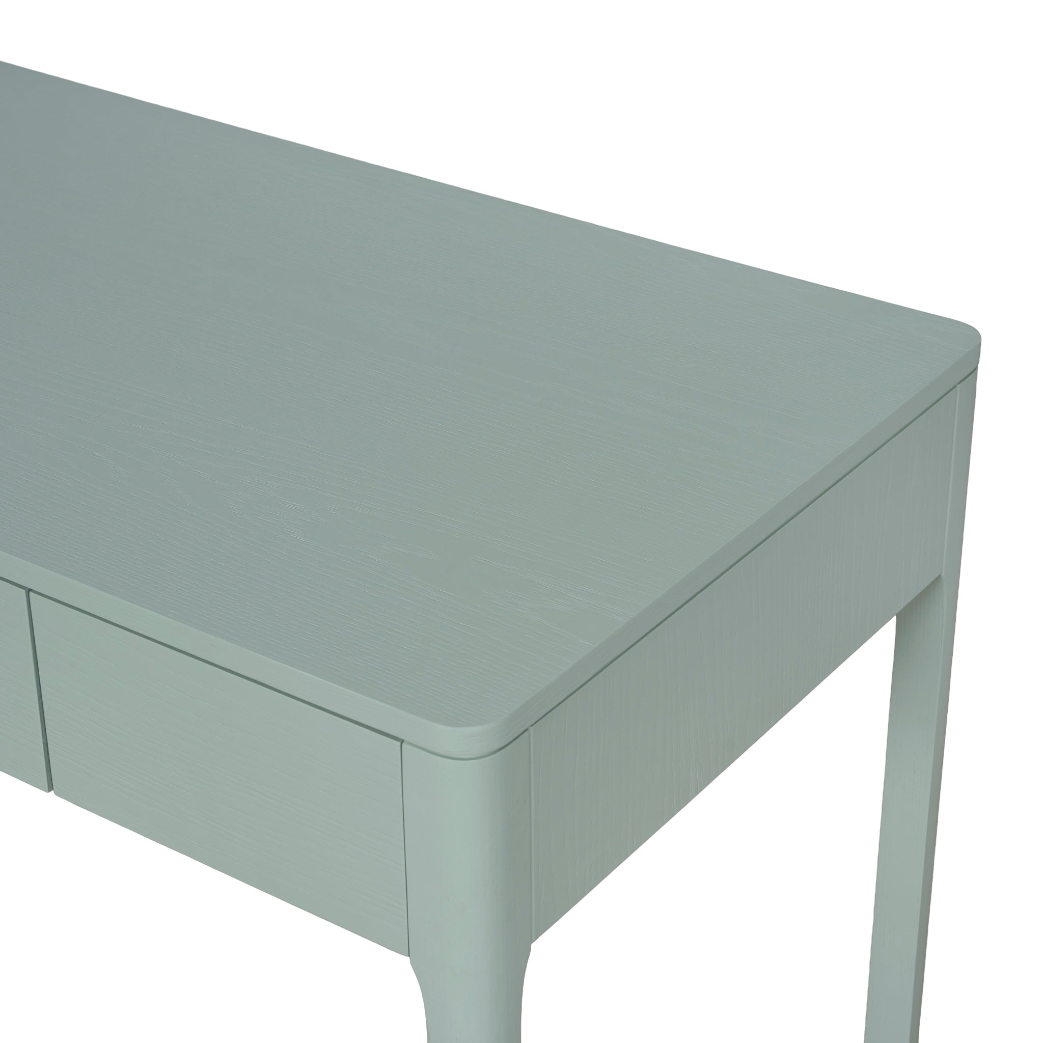 Engineered wood with veneer finish Olive sage green finish Clean lines with softly rounded edges Smooth-touch surface Visible wood grain Central drawer Slim straight legs This product is supplied flat-packed and requires assembly by two people