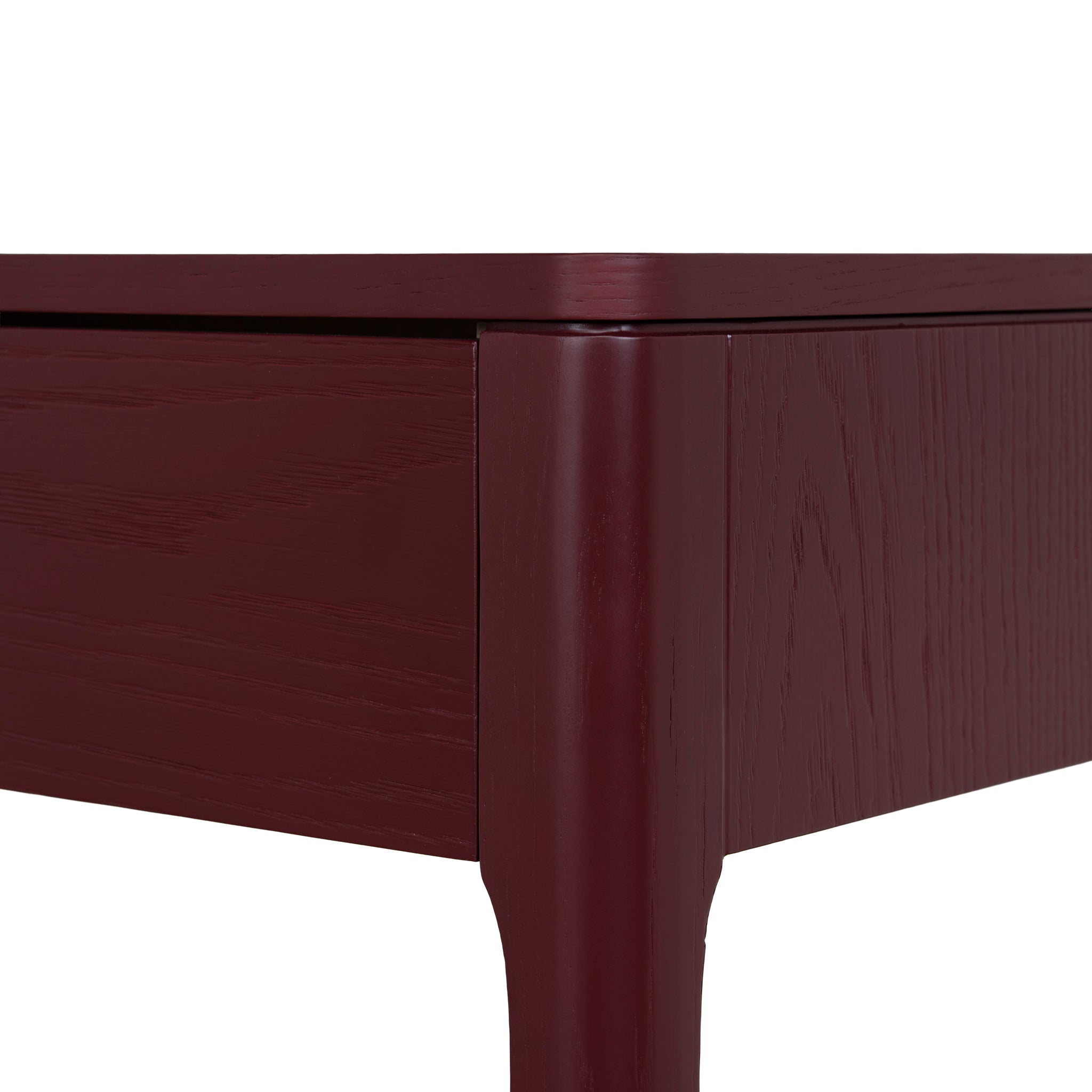 Engineered wood with veneer finish Burgundy red finish Clean lines with softly rounded edges Smooth-touch surface Visible wood grain Central drawer Slim straight legs This product is supplied flat-packed and requires assembly by two people