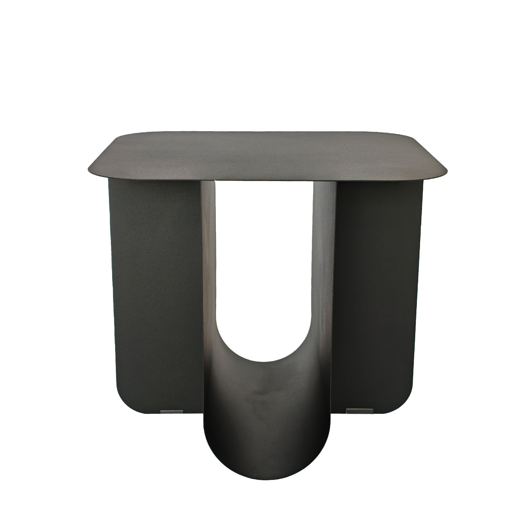 Iron metal construction Black powder-coated finish Compact 45cm size for small spaces Square-edged tabletop with soft corners Open-frame base Weight capacity: 5 kg Product comes fully assembled