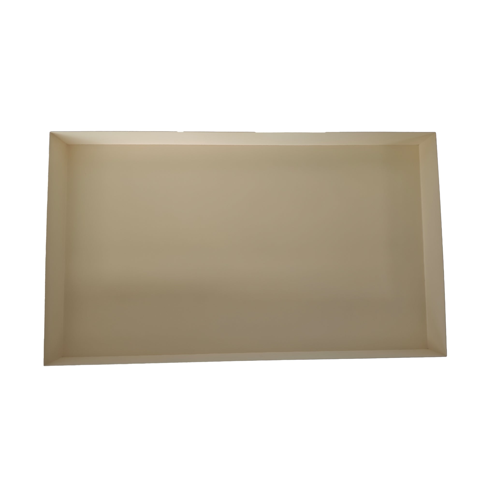 Iron metal construction Ivory white powder-coated finish Polyurethane wheels Multiple open shelves for versatile storage Geometric structure adds architectural detail Compact design ideal for smaller spaces Weight capacity: 5 kg per layer Minor assembly required