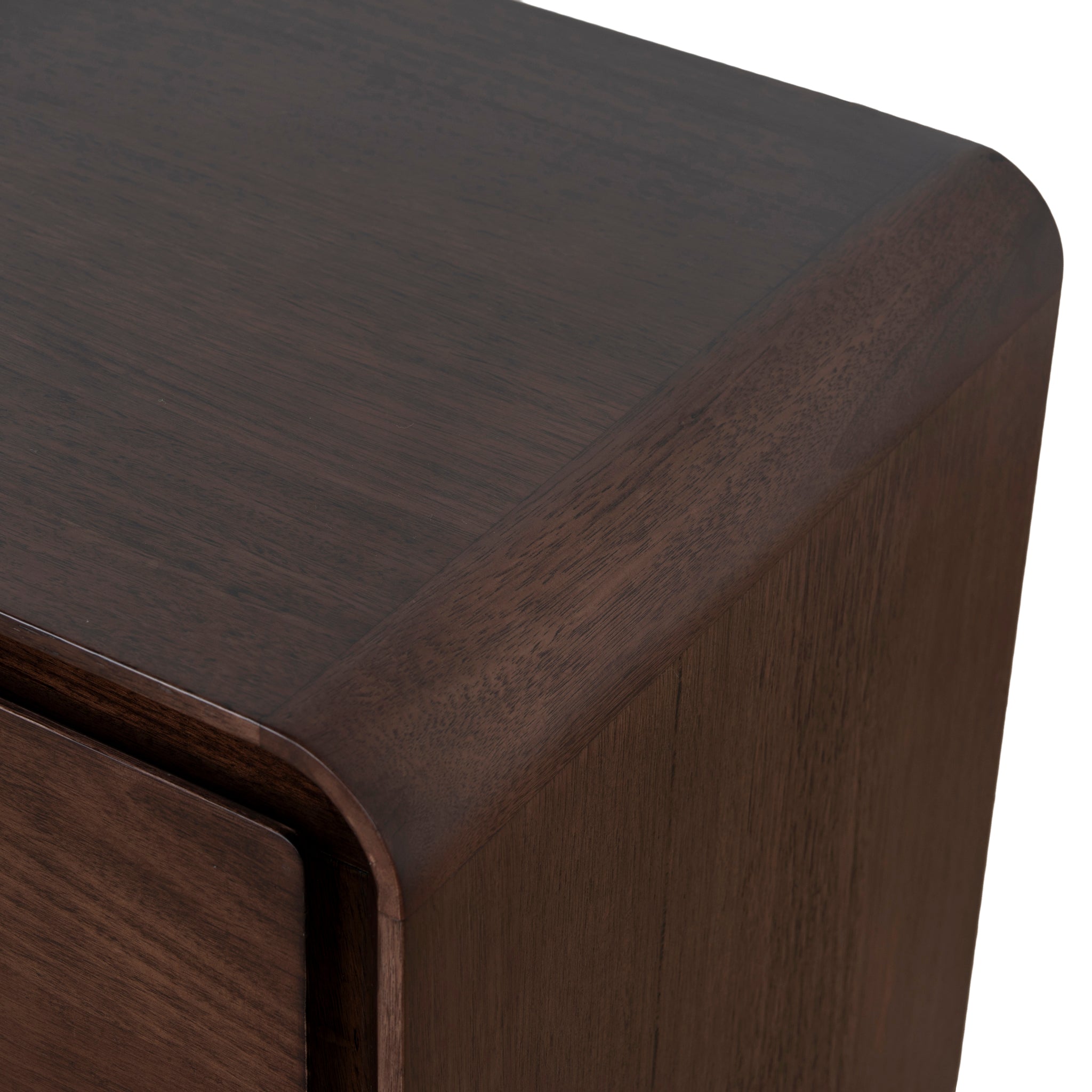Engineered wood top and sides with messmate veneer Solid messmate drawer fronts, legs, and corner joins Gently curved edges Subtle recessed detailing Organic messmate grain Two spacious drawers Full-extension metal runners Weight capacity: 20 kg (top), 5 kg (per drawer) Product comes fully assembled