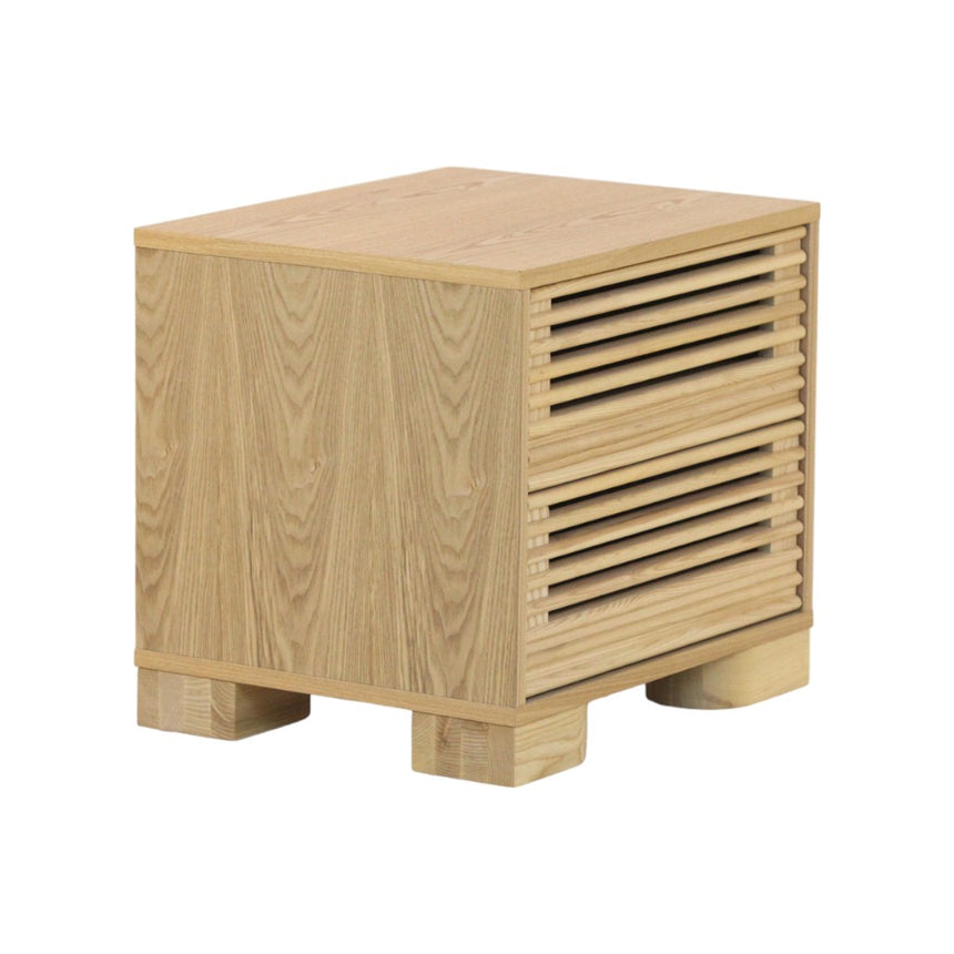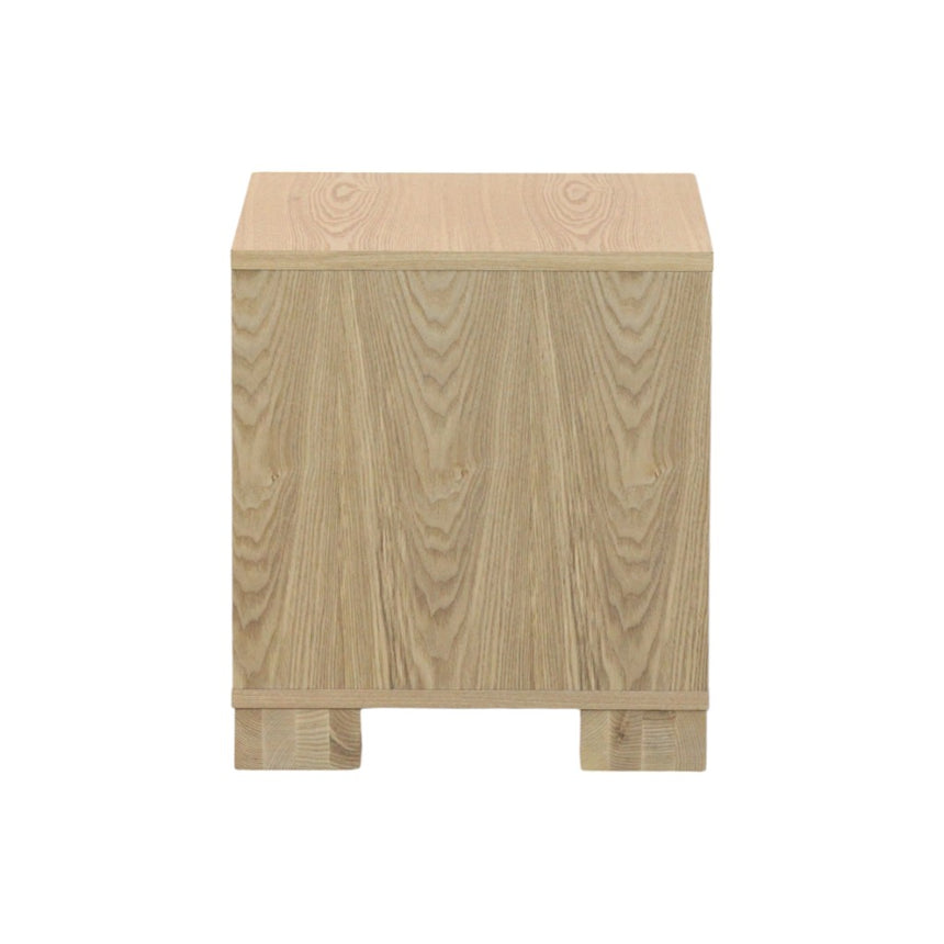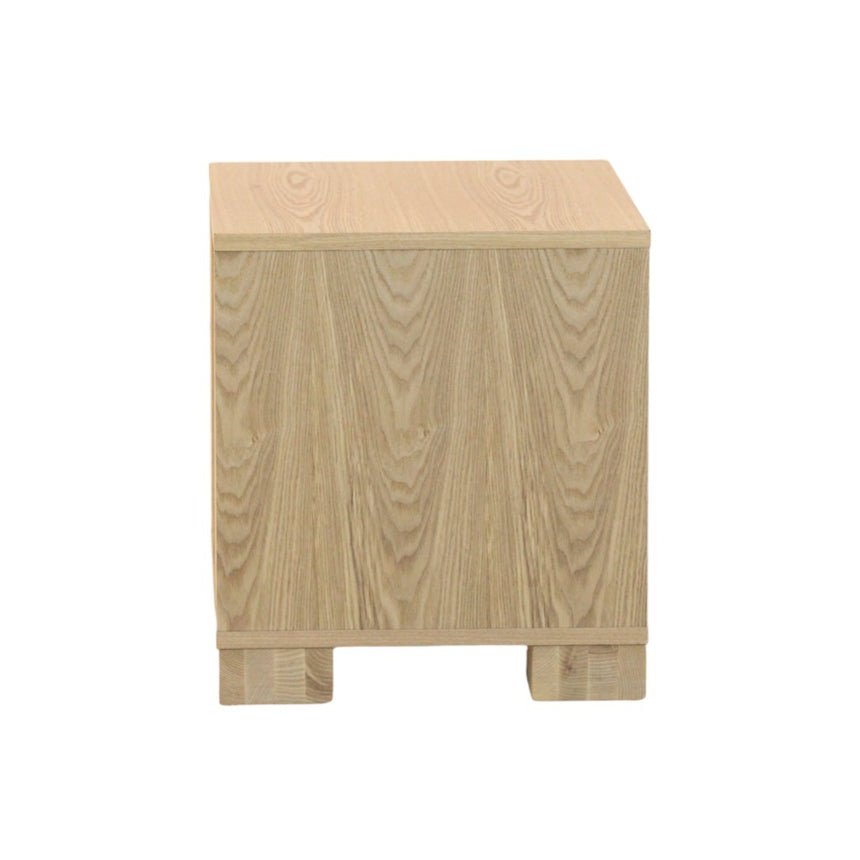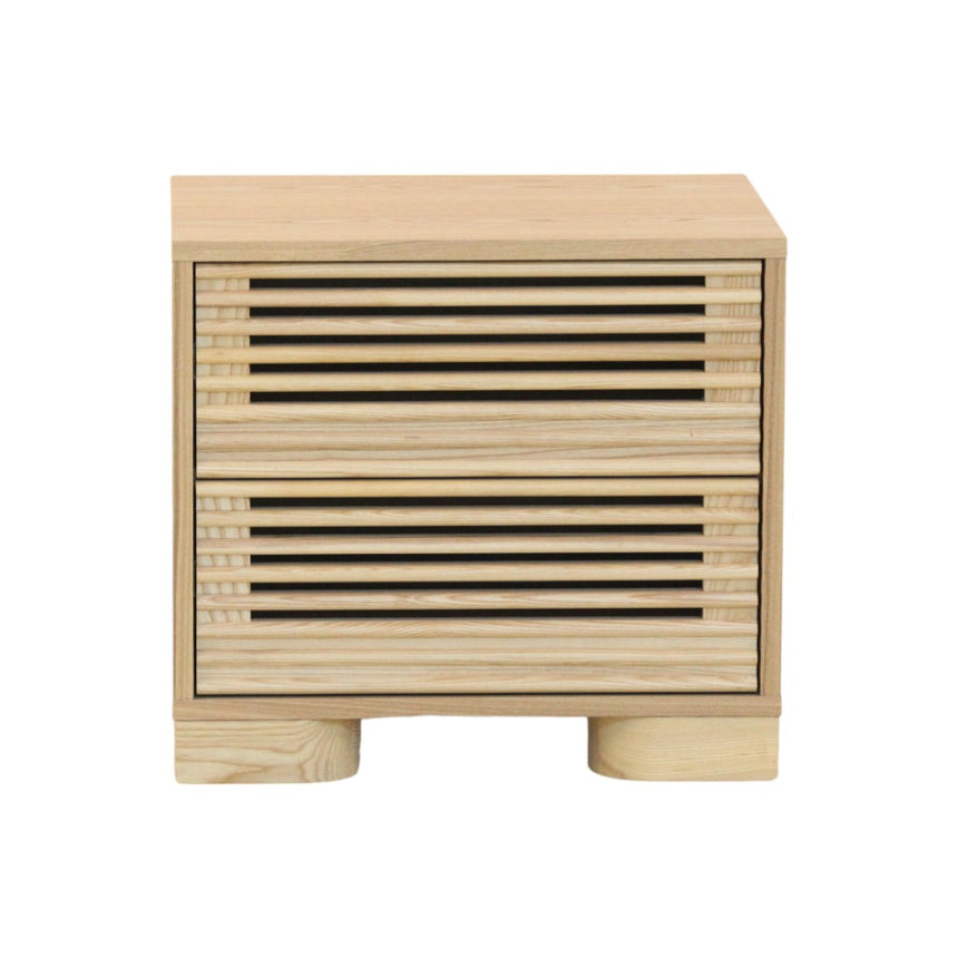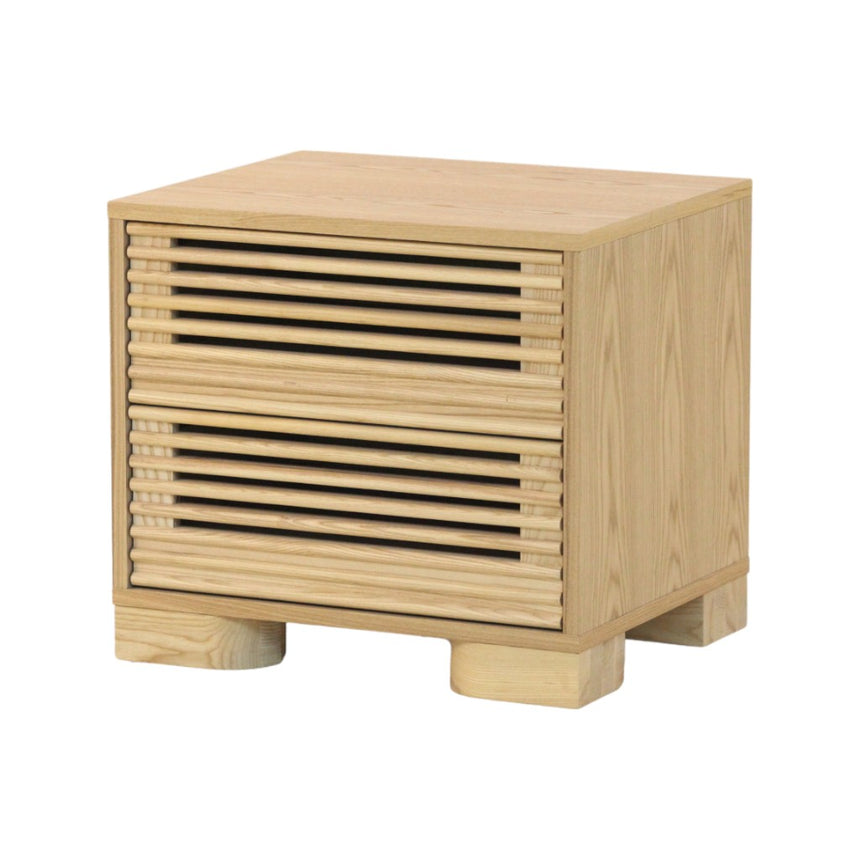 Engineered wood body with ash veneer Drawers with horizontal solid wood strip Pull-to-open mechanism for easy access Solid ash wood legs Natural wood color frame Weight capacity: 40kg Product is flat pack and requires two-person assembly