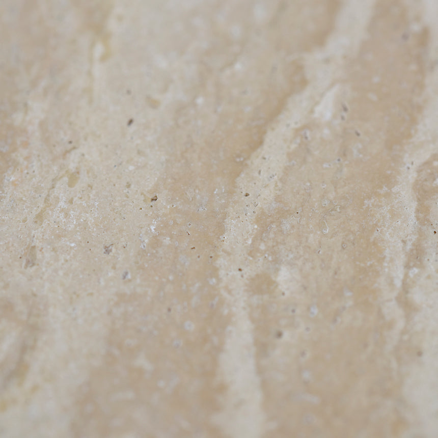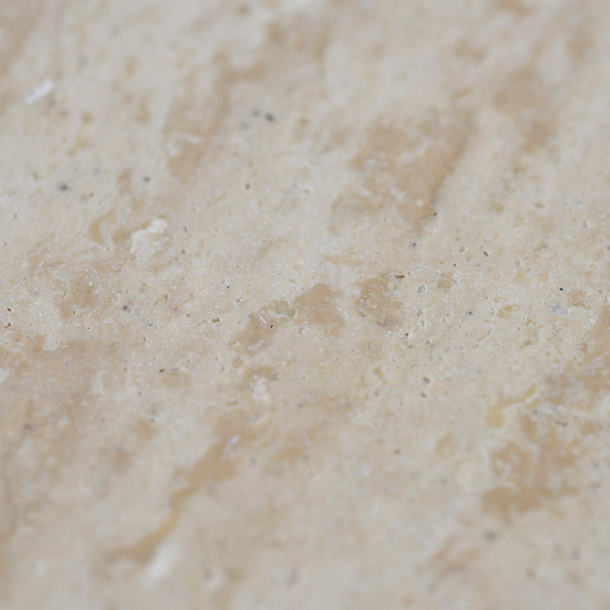 Travertine marble tabletop Elm base with veneer Circular top design Cross-legged style Visible wood grain on legs Weight Capacity: 40 kg Minor assembly required Note: Melbourne Pick-up and Delivery Only Travertine marble is a natural stone which will have unique imperfections and characteristics Any variations in colour, texture, polish and patterns are not faults Travertine marble is porous; wipe away any liquid spills immediately using water or a mild cleaner to avoid marks. Placemats and coasters are recommended Differences between shipments is to be expected