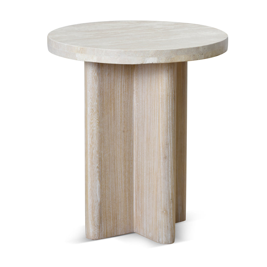 Travertine Marble Round Side Table - White Wash