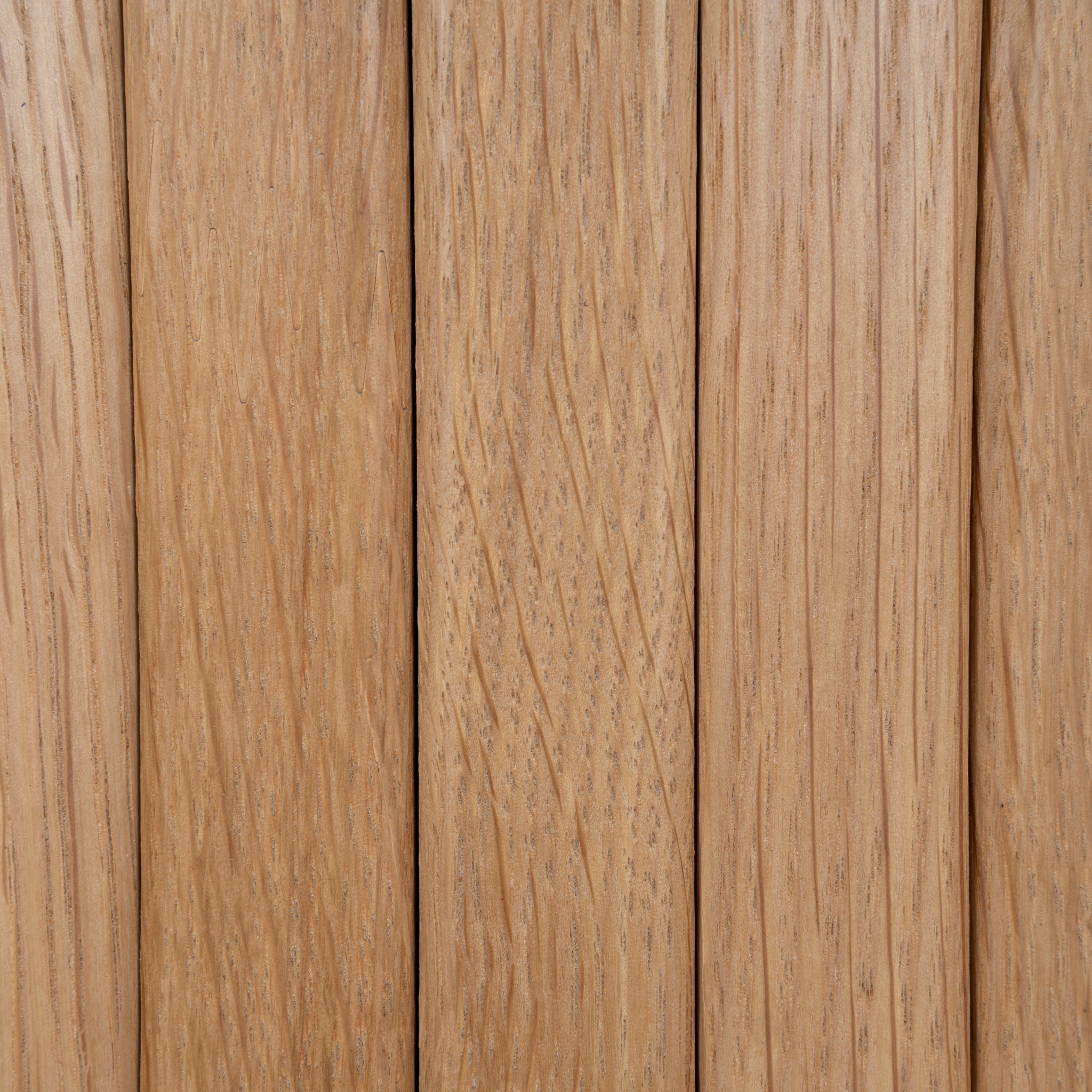 Engineered wood with a natural veneer finish Natural finish Rounded drum shape Vertical fluted slats Door slides 180 degrees Raised-edge base Weight Capacity: 80 kg This product is supplied flat-packed and requires assembly by two people