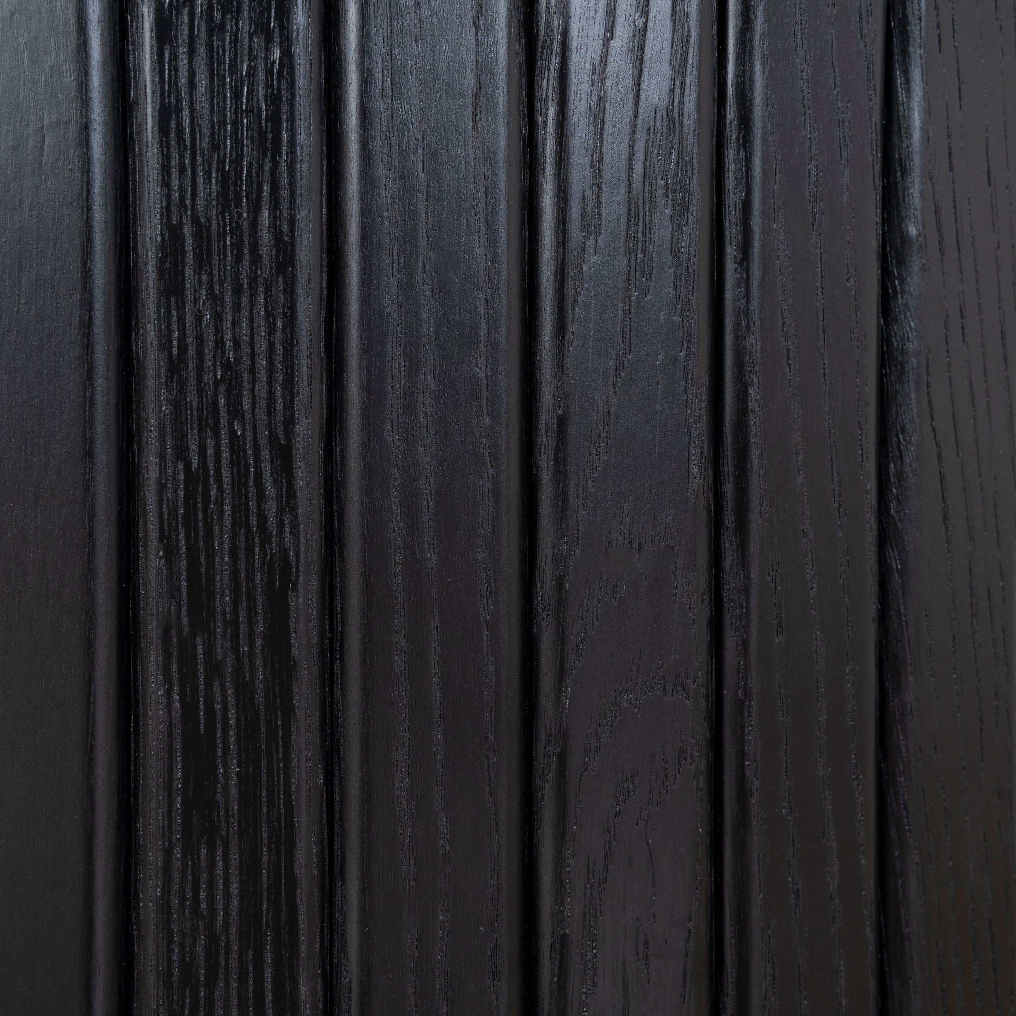 Engineered wood with a natural veneer finish Full black finish Rounded drum shape Vertical fluted slats Door slides 180 degrees Raised-edge base Weight Capacity: 80 kg This product is supplied flat-packed and requires assembly by two people