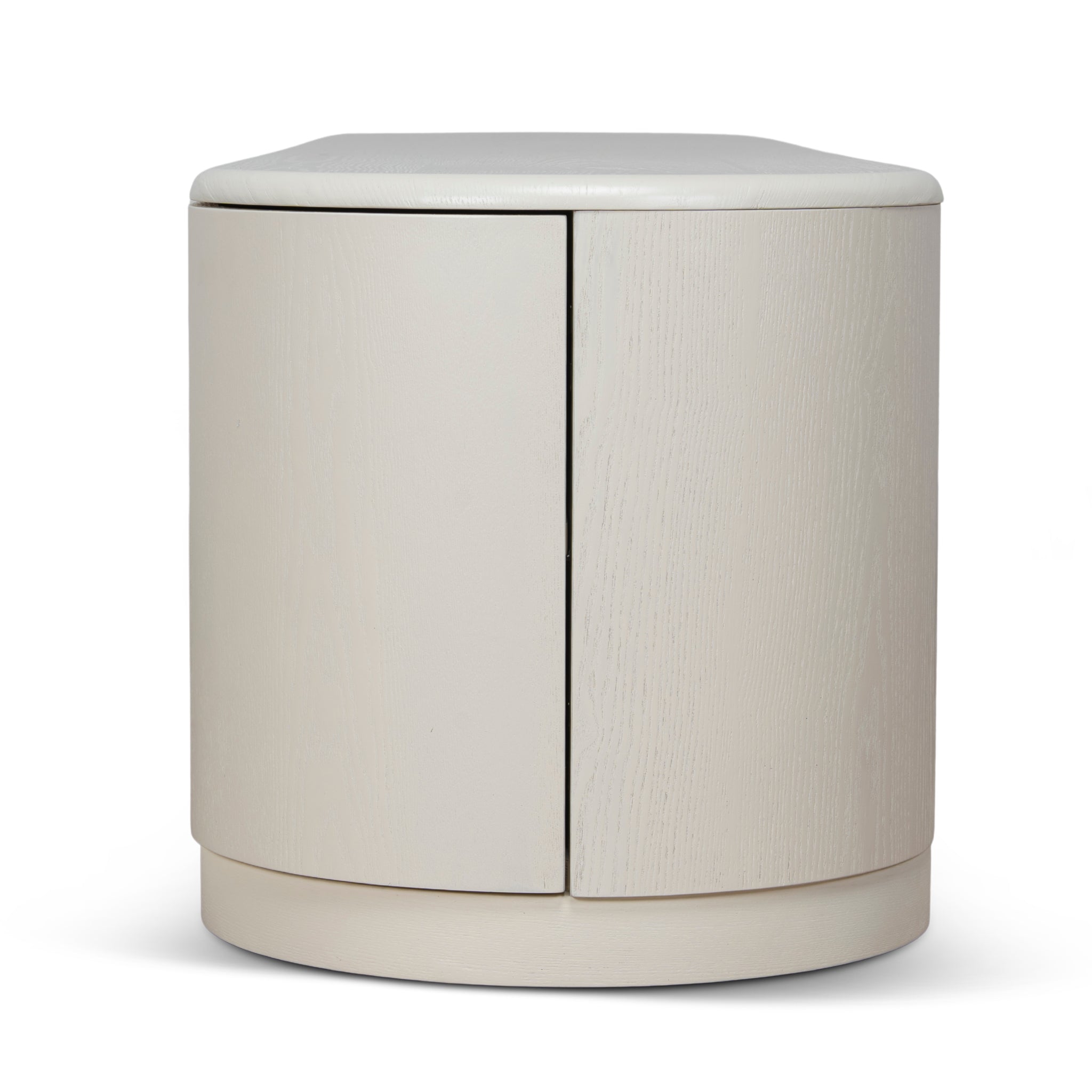 Engineered wood with white ash veneer Soft matte white finish Straight-grain veneer detailing Smooth-touch surface Spacious internal shelving Three integrated cable holes Smooth open-and-close mechanism Rounded base with floating appearance Weight capacity: 150 kg Product comes fully assembled