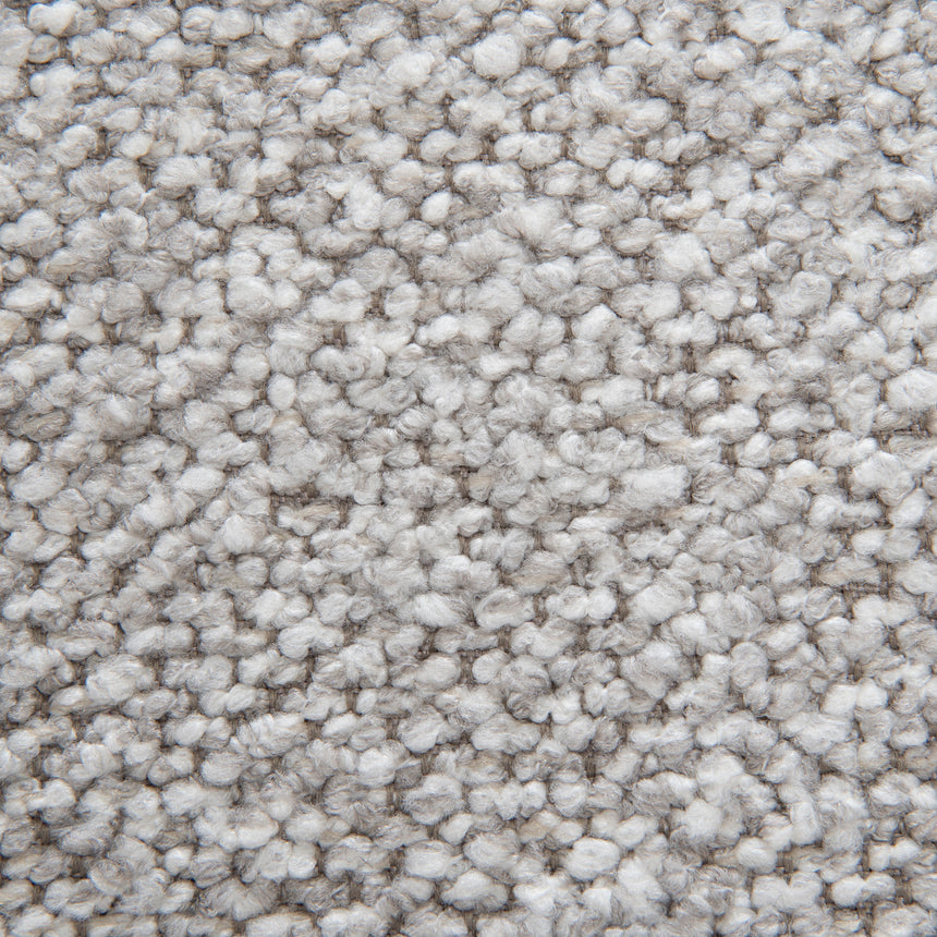 Clay grey polyester upholstery Iron frame and legs Foam filling Soft-medium seat firmness White metal frame complements fabric seat Arched backrest Perfect for small or minimalist spaces Weight Capacity: 150 kg Minor assembly required