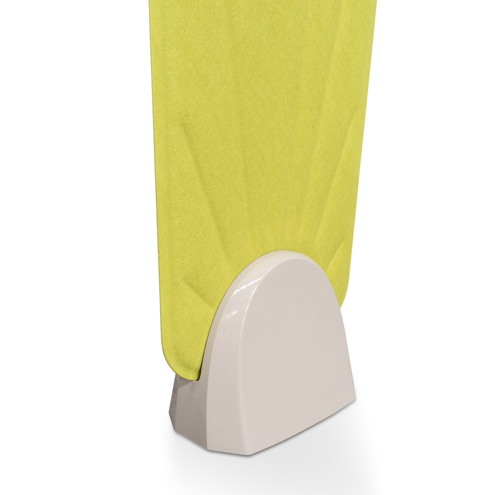 Lime green fibre board screen Minor assembly required Commerical grade Note: 5- years manufacturer's warranty against defects Floor stock items are excluded from returns and standard warranty, inspection is recommended.