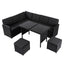 Ella 8-Seater Modular Outdoor Garden Lounge and Dining Set with Table and Stools in Black