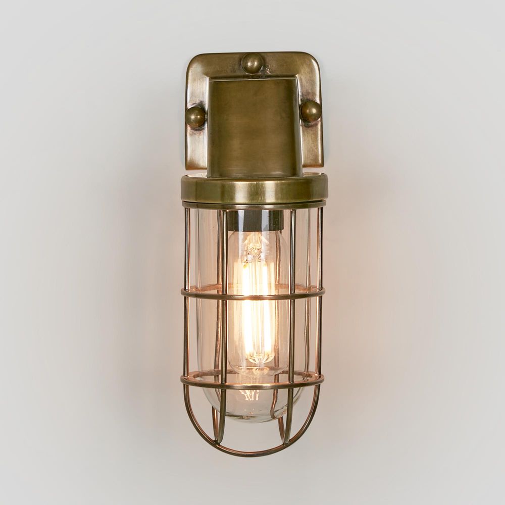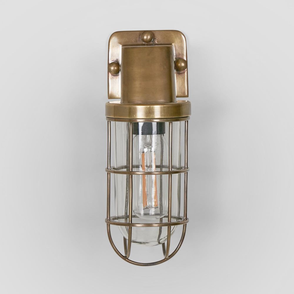 Royal London Wall Lamp Antique Brass is a stunning addition to any indoor or outdoor space. This IP-rated 54 wall sconce features a clear glass and brass metal cage, making it suitable for both indoor and outdoor use. Its sleek design makes it perfect for use in gardens, patios, and entryways, while also adding a touch of industrial, rustic, or loft-style charm to any bathroom as side mirror lights.