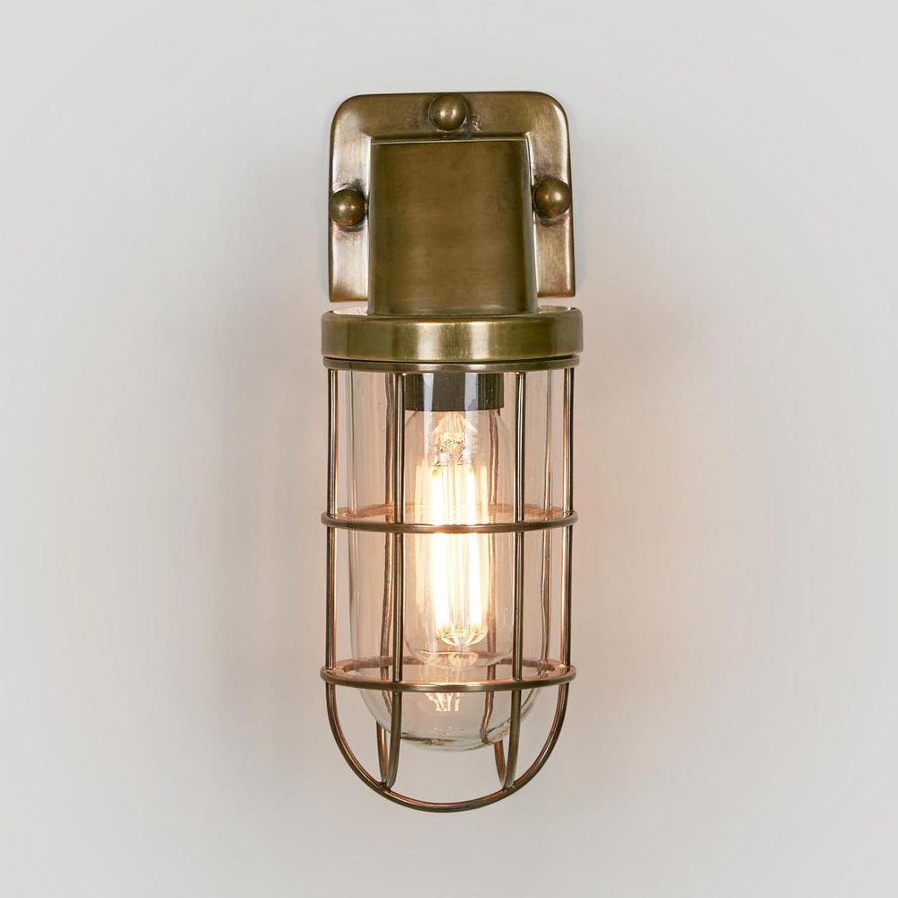 Our Royal London wall light is IP-rated 54 wall sconce with clear glass and brass metal cage, which suitable for indoor and outdoor use. This lantern style wall lamp is used mainly for outdoor garden lamp, patios and entryways. With sleek appearance, it can also be used in bathroom as side mirror lights to match any industrial, rustic or loft-style décor. Its caged enclosure houses a standard bulb or an antique-style filament that mimics the glow of a warmly lit station. ADDITIONAL FEATURES * The lamp holder takes E27 globe max 40w * IP-rated 54 certified suited for outdoor use * Standard Australian domestic fitting * Crafted from solid brass with seamless design Please note glass components are handmade and therefore small air bubbles, slight defects and colour variations may naturally occur during the glassblowing process [ download spec sheet ]