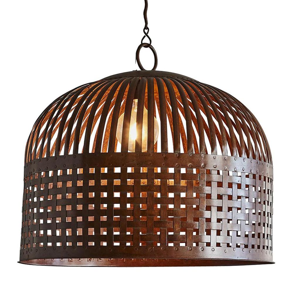 Esch features individual lengths of iron strips that are woven together and held in place by rivets, suspended beneath a graceful dome.