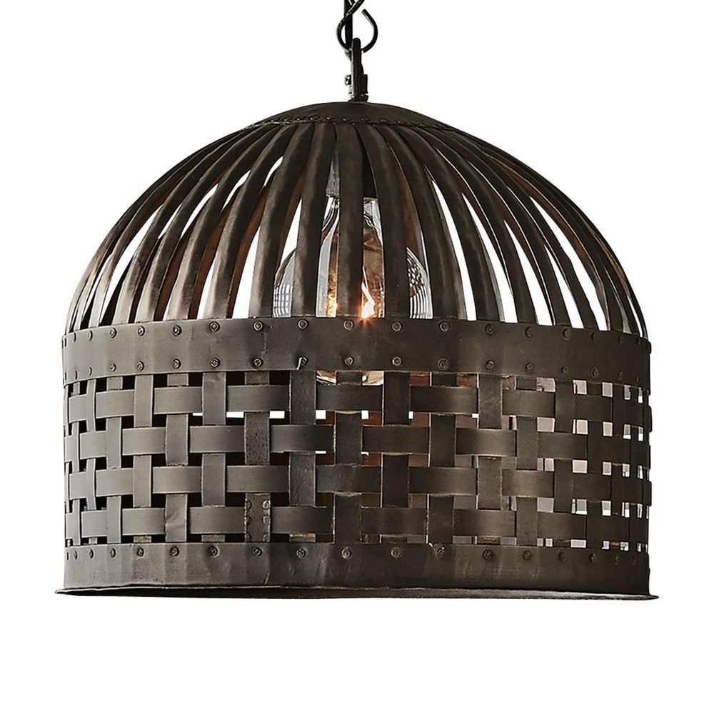 Esch features individual lengths of iron strips that are woven together and held in place by rivets, suspended beneath a graceful dome.