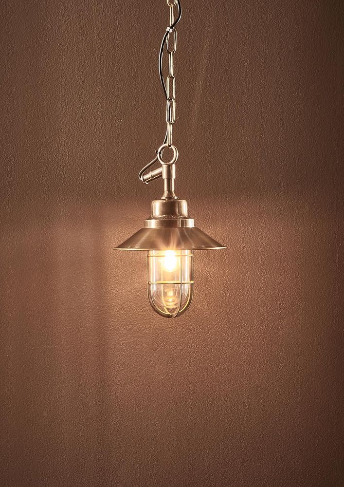 Rutherford Outdoor Hanging Lamp in Brass is the perfect addition to any indoor or outdoor space. With its IP-rated 54 rating, this hanging lamp is suitable for both indoor and outdoor use. The clear glass and brass metal cage give it a sleek appearance that can complement any industrial, rustic, or loft-style decor.