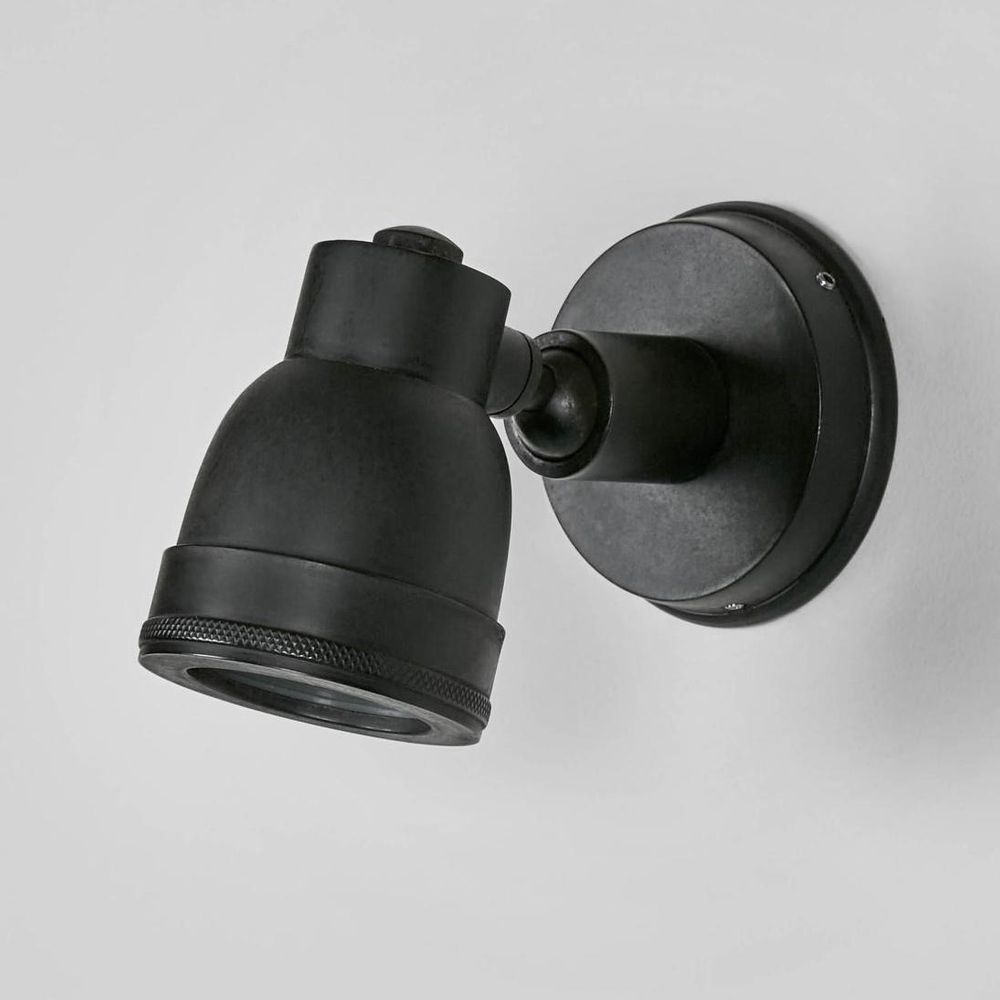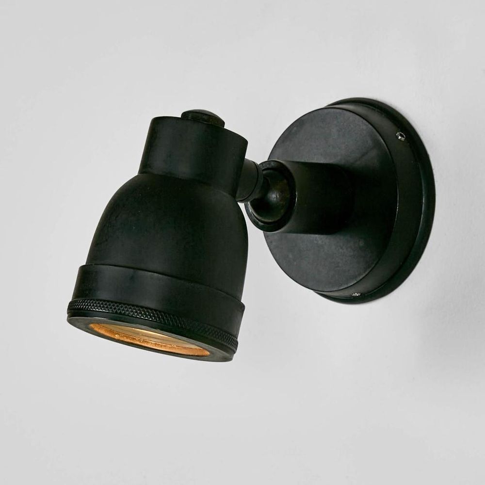 Pasco outdoor wall lamp is simple ornate fitting, touched to upgrade your exterior space. Crafted from solid brass metal, its seamless design with GU-10 type globe to produce a single beam of non-adjustable light. The metal shade however has function to rotate and provide you with flexibility to spot at different angle. Certified with IP-rated 54, Seaman wall lamp is weather resistant suited for outdoor use to highlight outdoor entrance, patio or walkway.