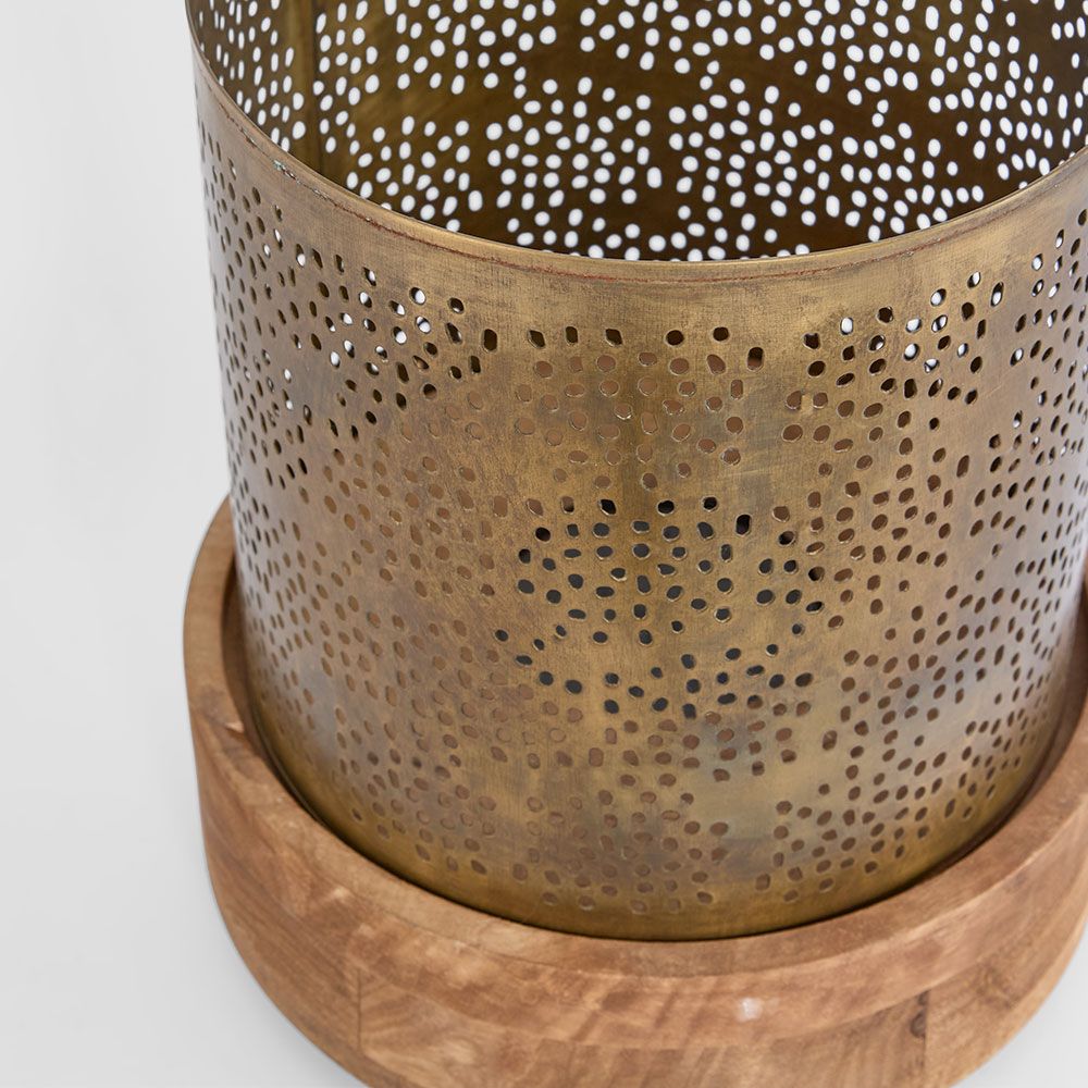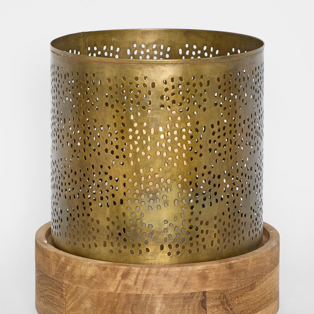 Illuminate your space with charm and sophistication using our Large Siena Table Lamp in Antique Brass, a radiant fusion of natural wood and finely crafted metal. This exquisite lamp doubles as a stunning decorative accent, perfect for adorning your hallway drawers, display shelves, or bedside table. Featuring intricate perforations, it casts a warm and inviting glow, adding a touch of elegance to any room. Whether brightening up a cozy nook or serving as a focal point in your living space, this lamp is sure to captivate and enchant.