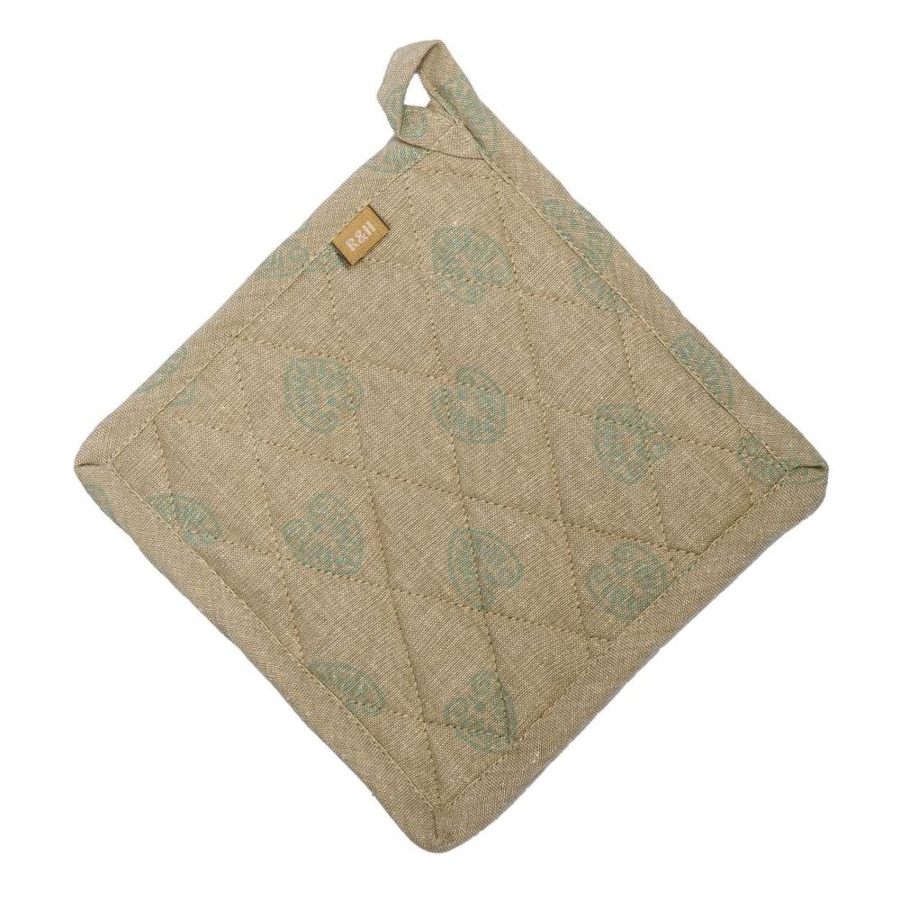 The Sky Grey Mandalay potholder features the stamped Mandalay print adding gorgeous detailing to your kitchen napery. The textured cotton with quilted pattern will protect your hands and surfaces from any heat. The handy hook allows to hang the trivet easily, keeping it out of the way until its needed. Made of sustainable 100% cotton. The Mandalay range comes in a range of colours to compliment all your Raine & Humble wares. Our trivets are ethically made with a commitment to reduce global footprint.